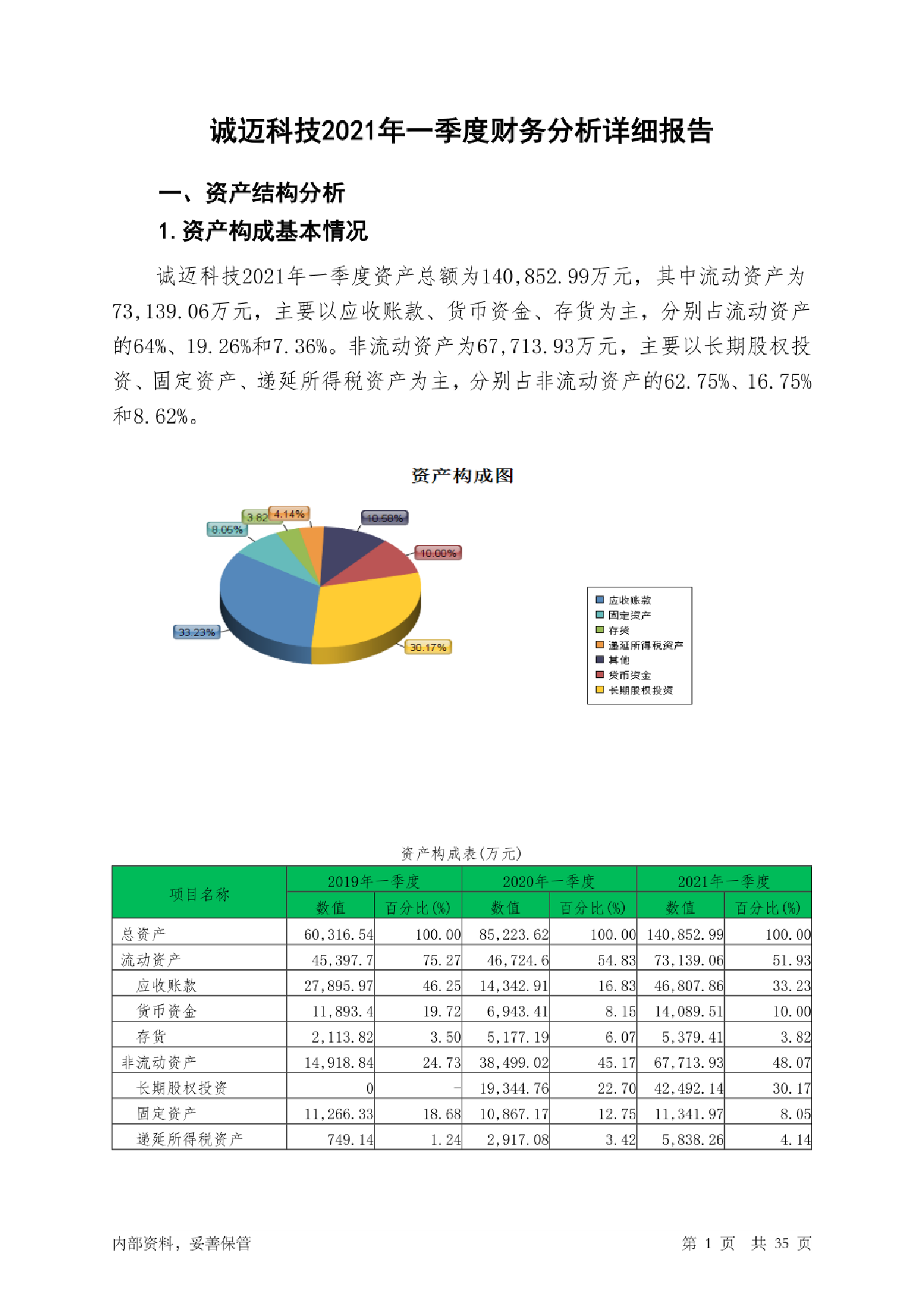 诚迈科技2021年一季度财务分析详细报告-智泽华文库