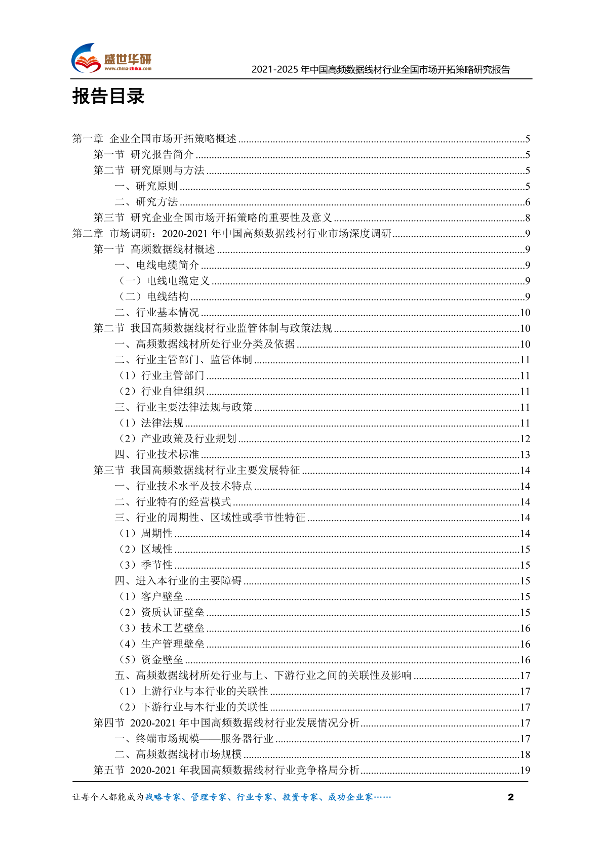2021-2025年中国高频数据线材行业全国市场开拓策略研究报告