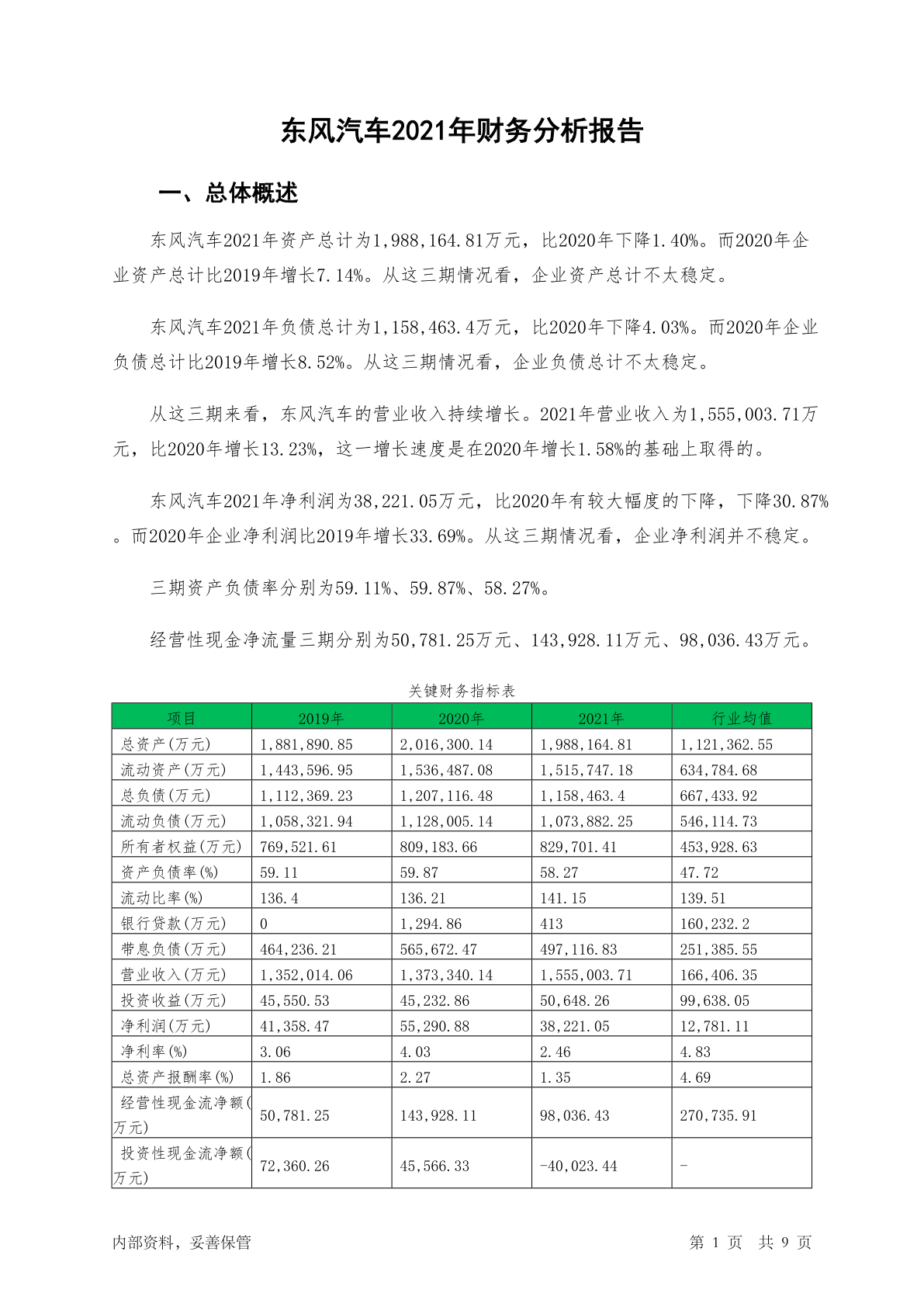 600006东风汽车2021年财务分析报告-银行版