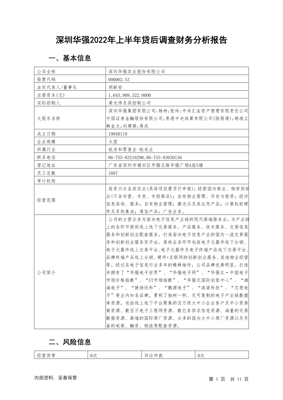 000062深圳华强2022年上半年贷后调查财务分析报告