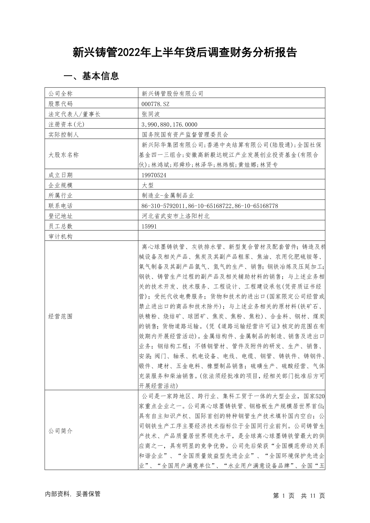000778新兴铸管2022年上半年贷后调查财务分析报告