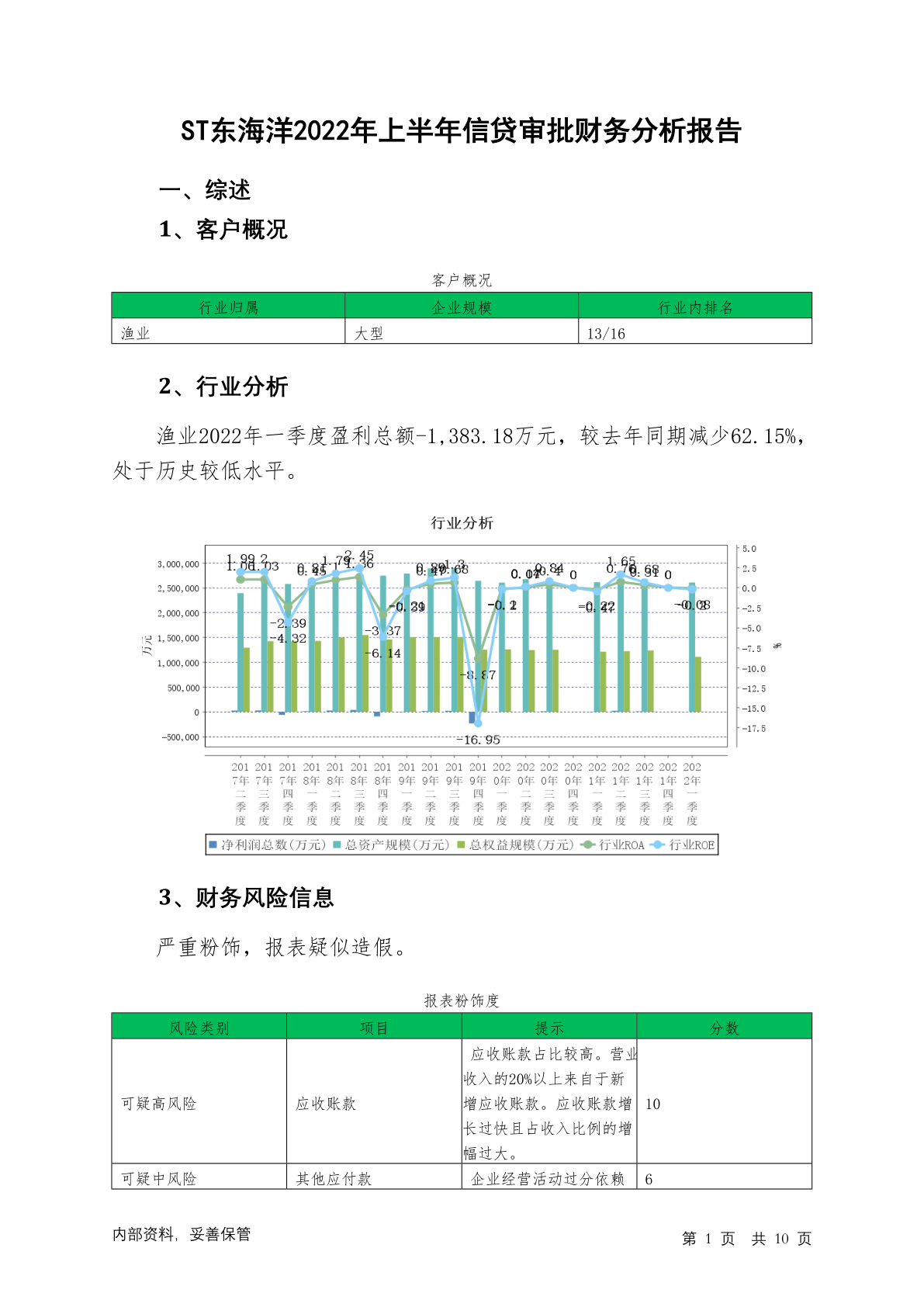 002086ST东海洋2022年上半年信贷审批财务分析报告