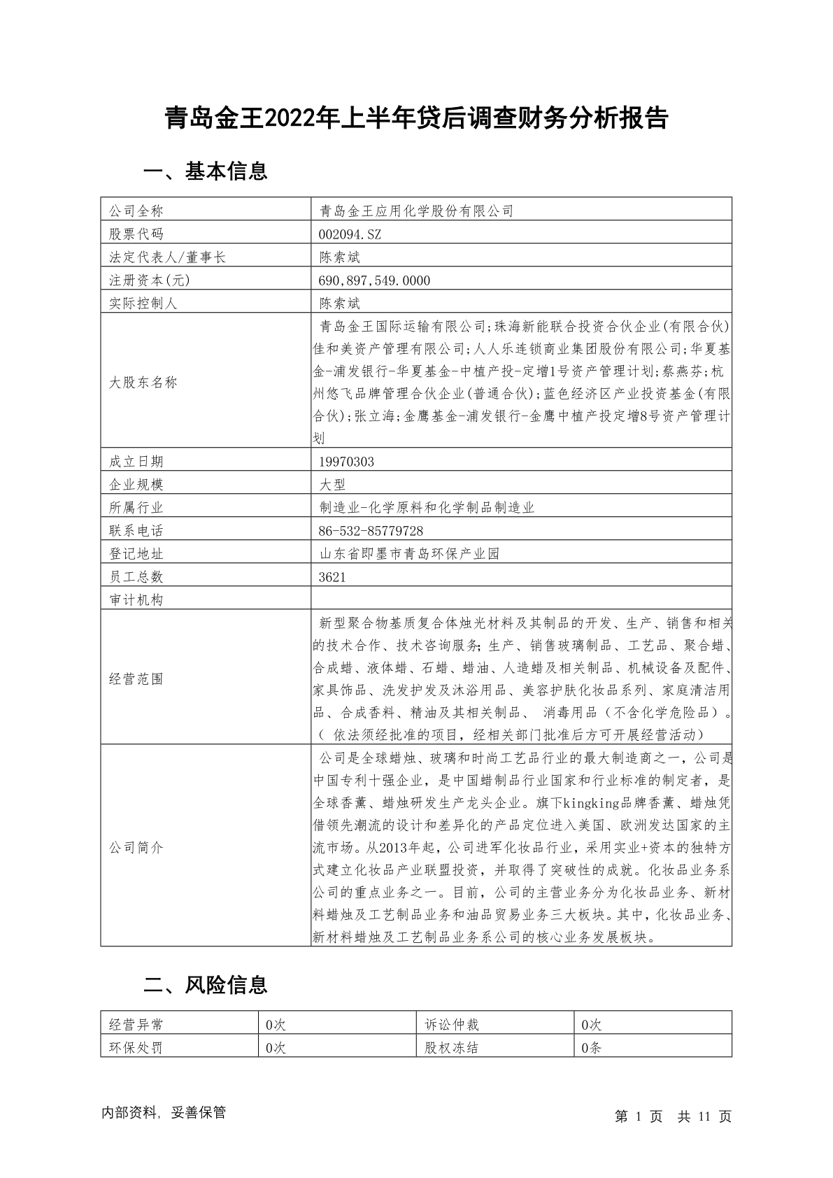 002094青岛金王2022年上半年贷后调查财务分析报告