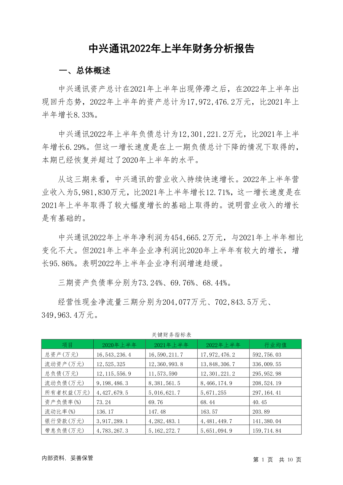 000063中兴通讯2022年上半年财务分析报告-银行版