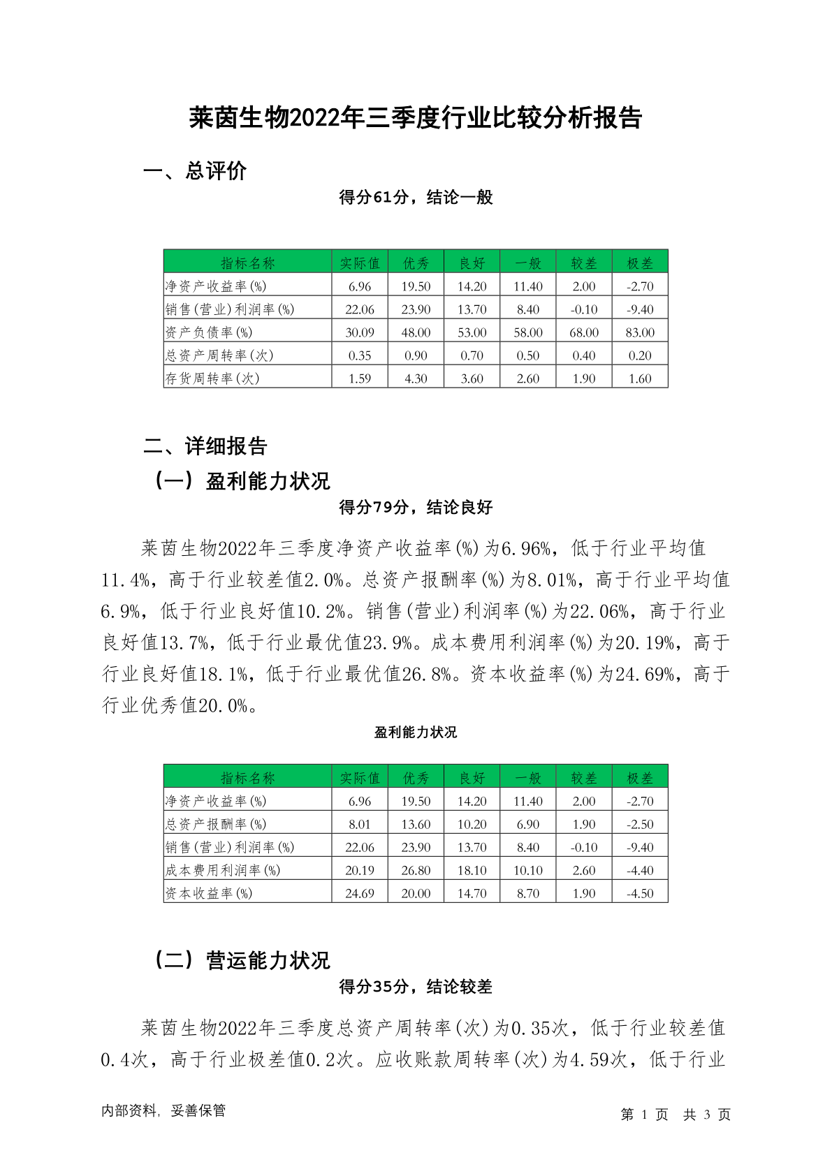 002166莱茵生物2022年三季度行业比较分析报告