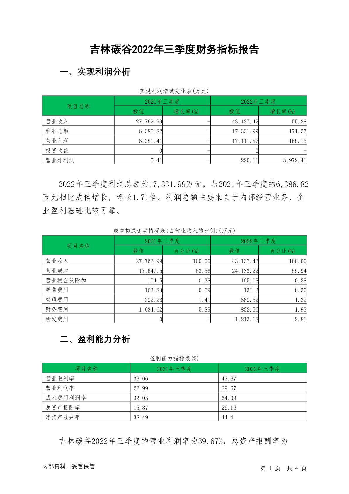 836077吉林碳谷2022年三季度财务指标报告