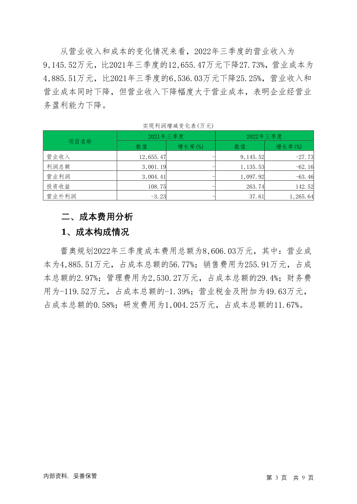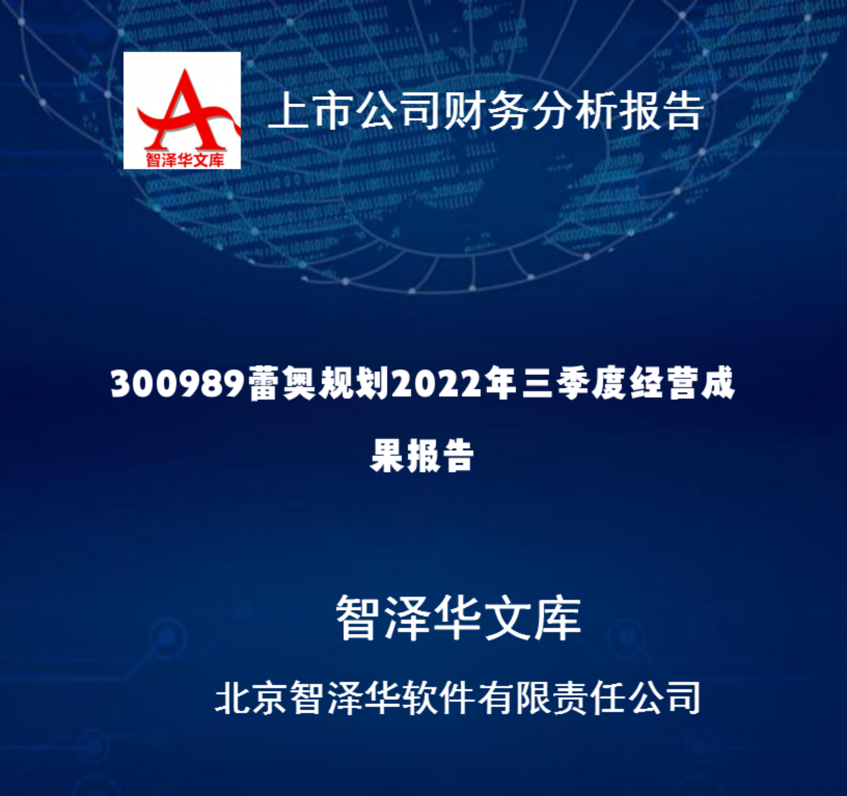 300989蕾奥规划2022年三季度经营成果报告