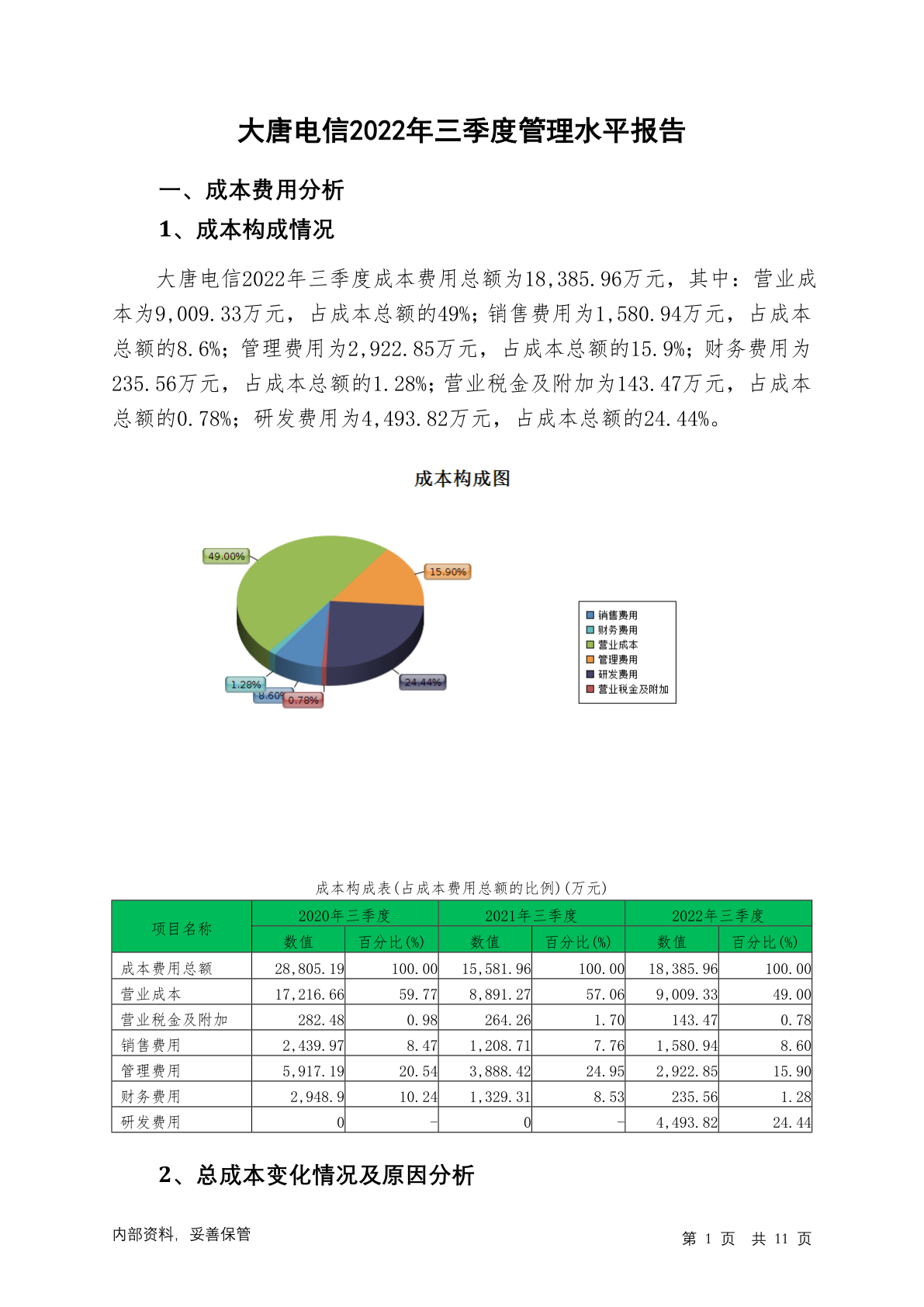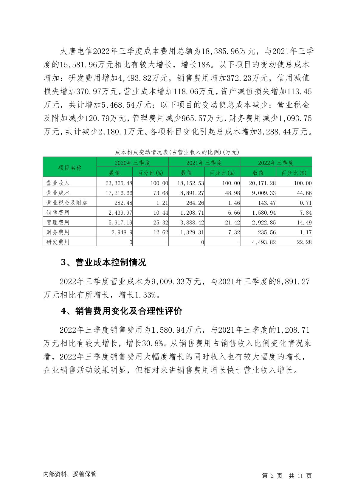 600198大唐电信2022年三季度管理水平报告