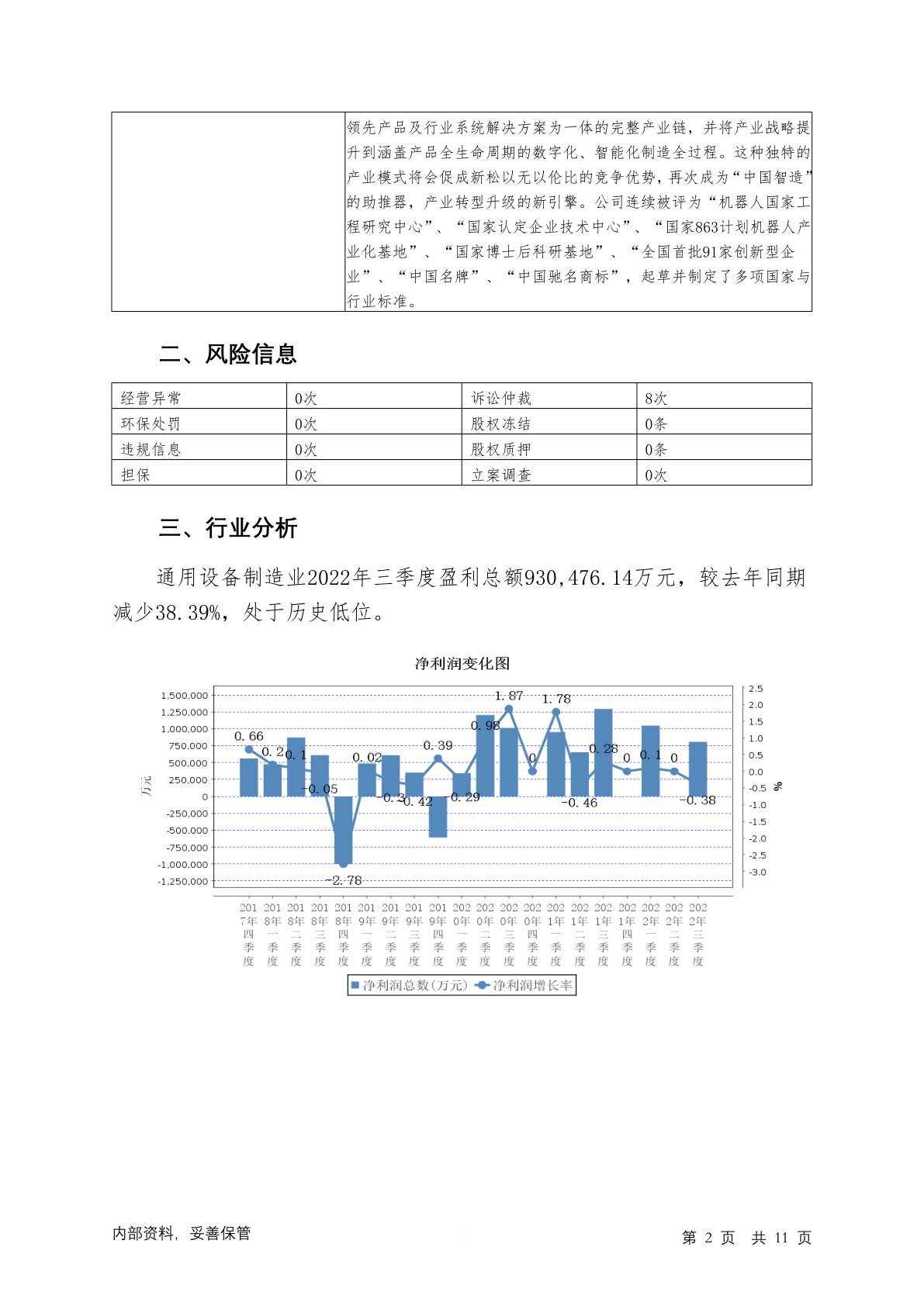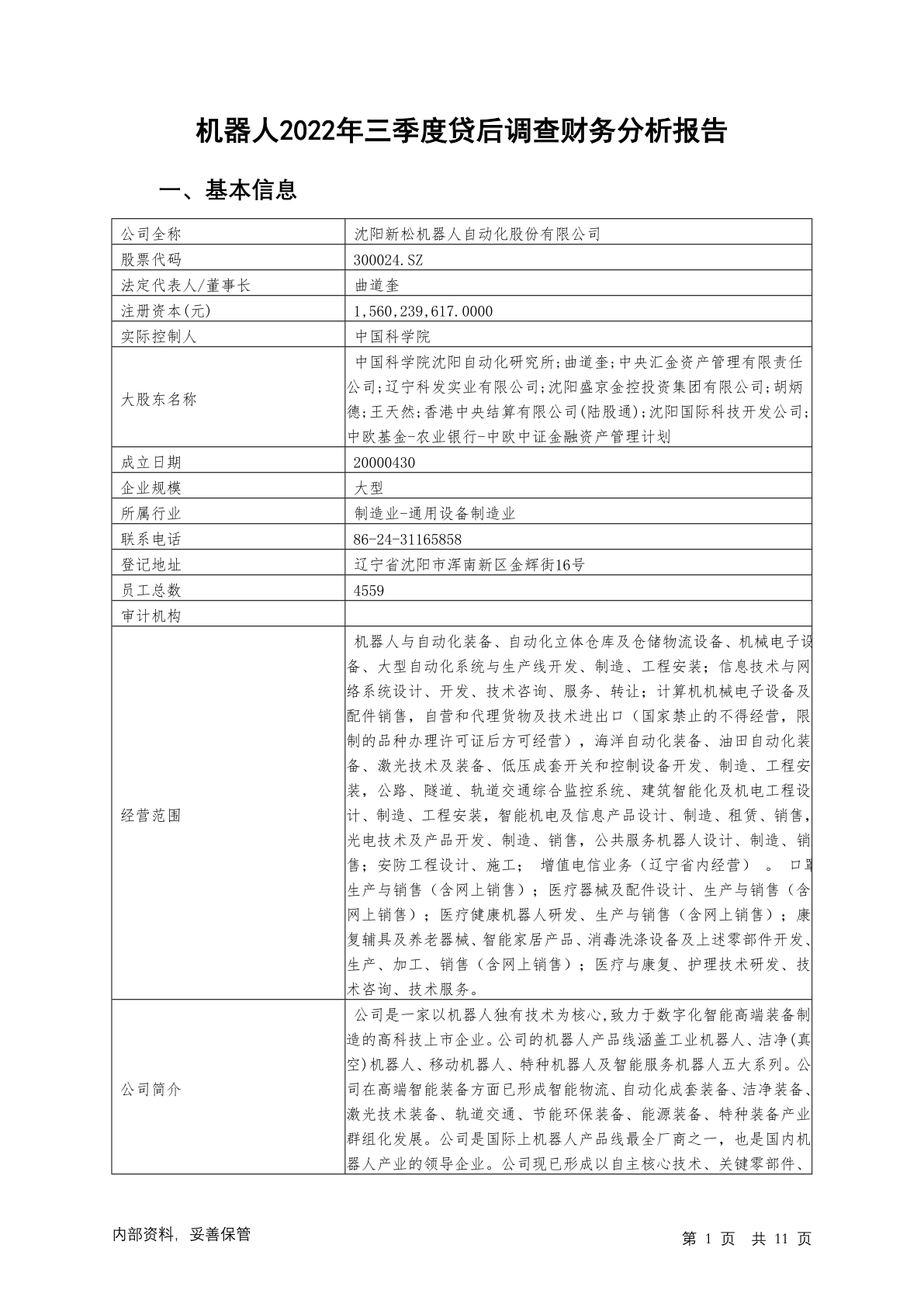 300024机器人2022年三季度贷后调查财务分析报告