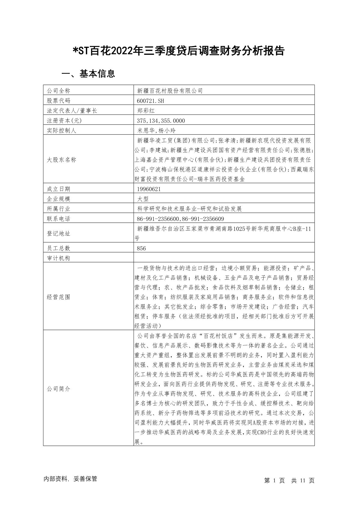 600721ST百花2022年三季度贷后调查财务分析报告