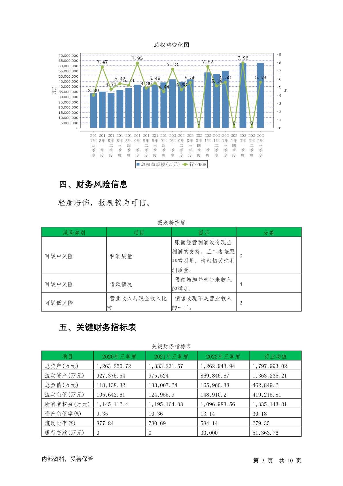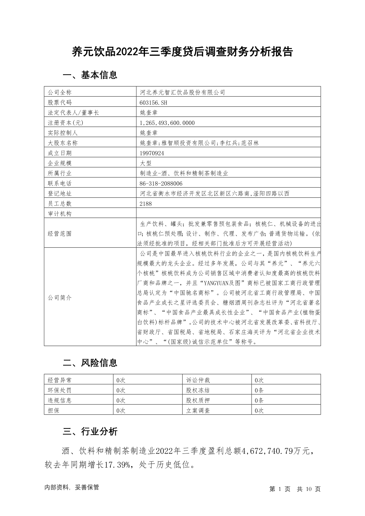 603156养元饮品2022年三季度贷后调查财务分析报告