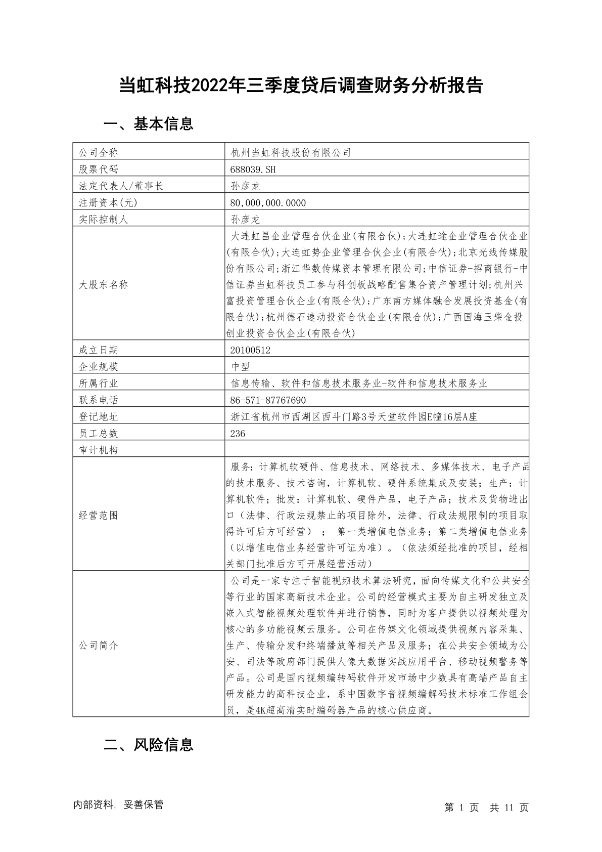 688039当虹科技2022年三季度贷后调查财务分析报告