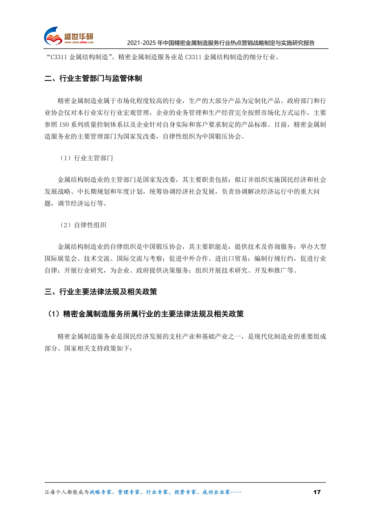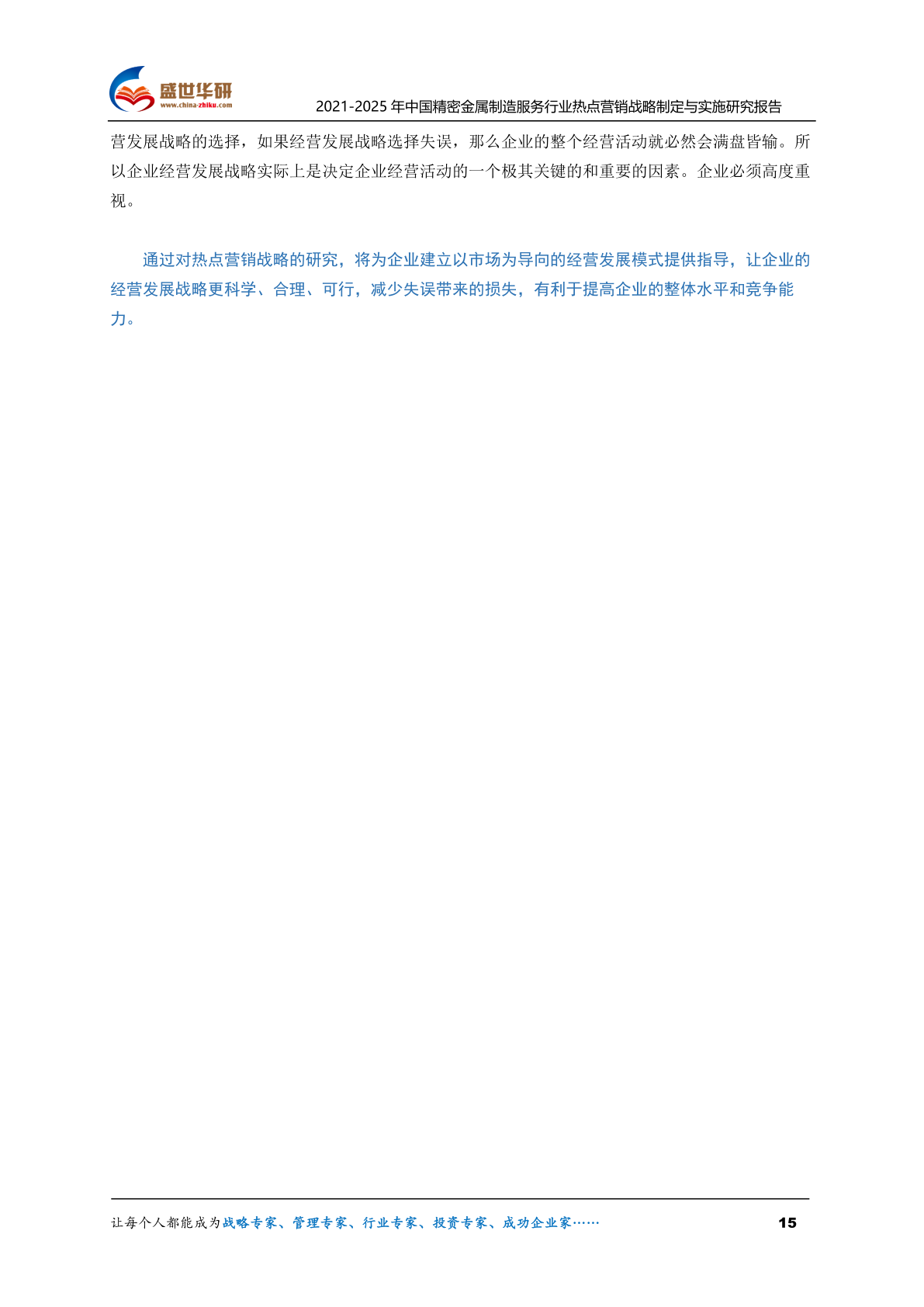 2021-2025年中国精密金属制造服务行业热点营销战略制定与实施研究报告