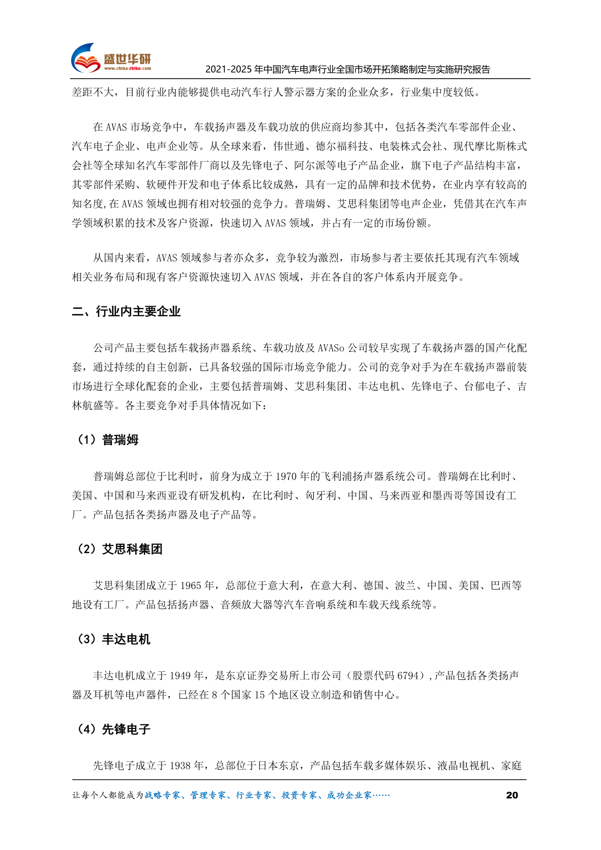 2021-2025年中国汽车电声行业全国市场开拓策略制定与实施研究报告