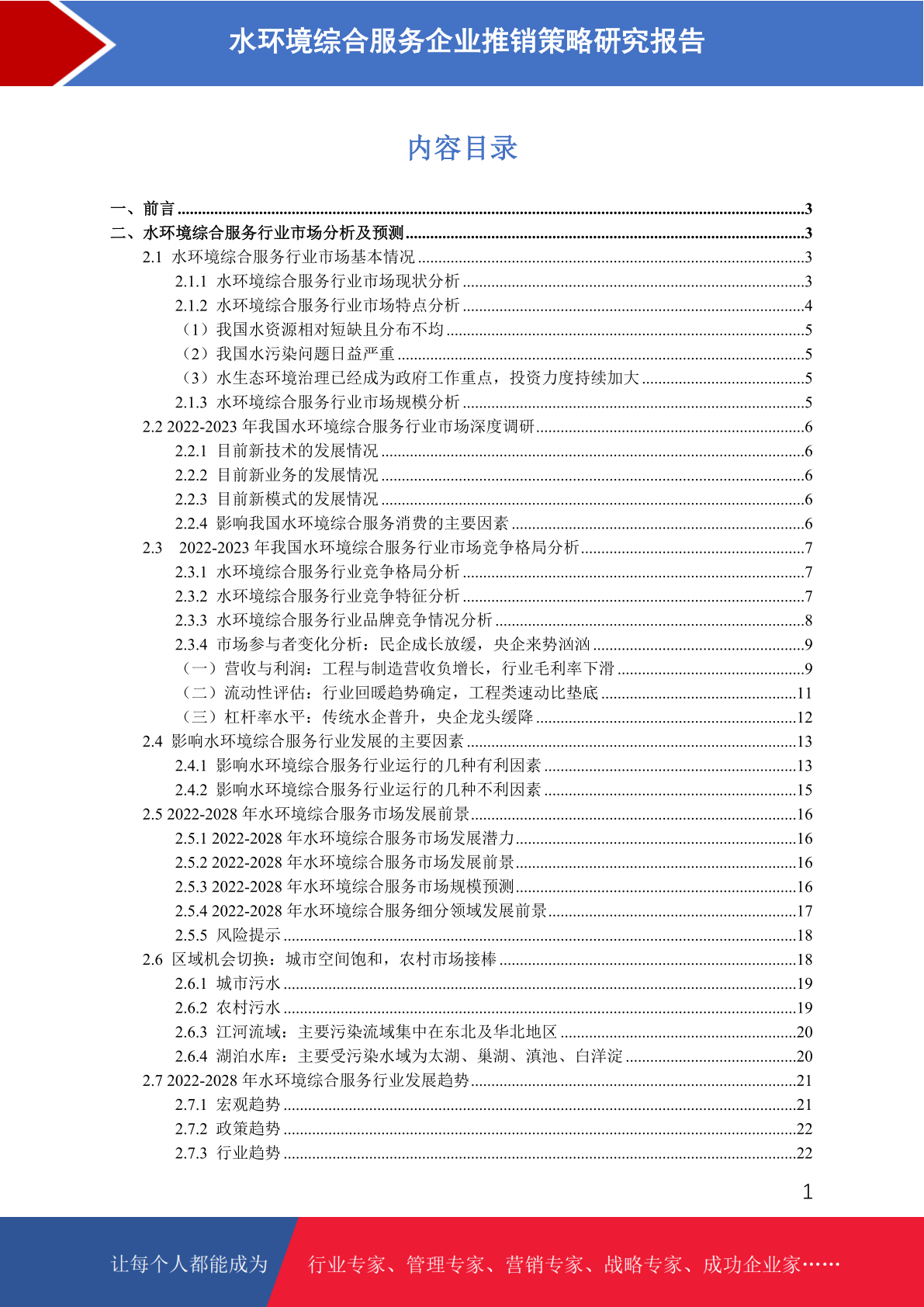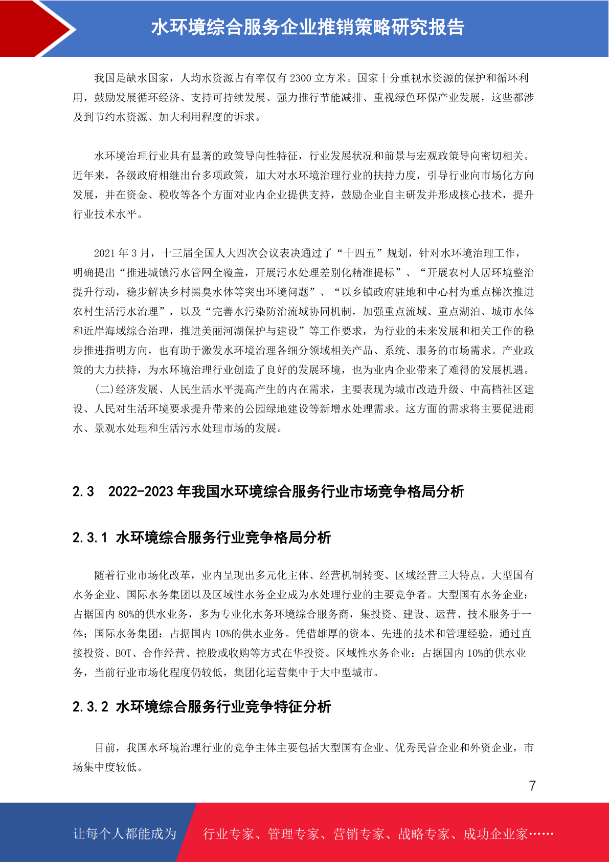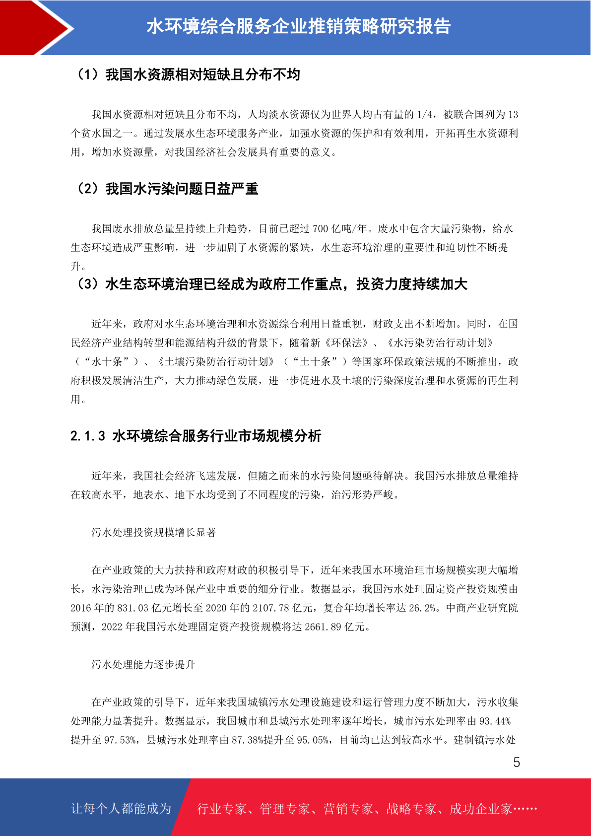 水环境综合服务市场分析及推销策略研究报告