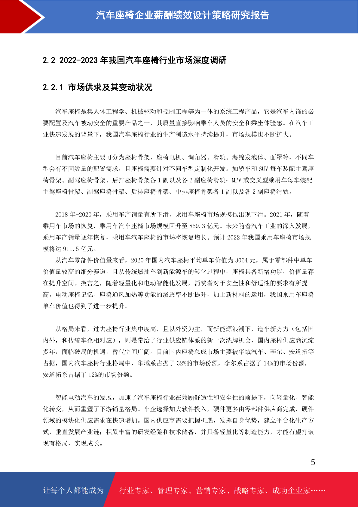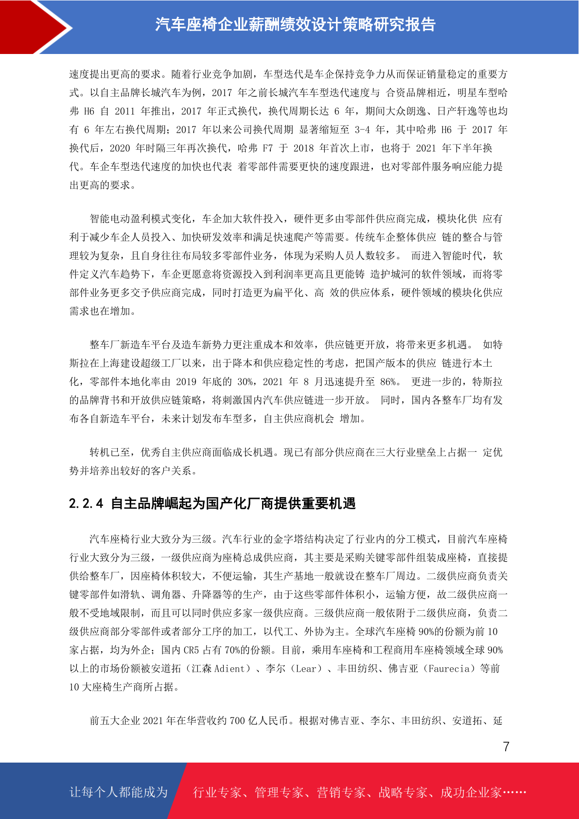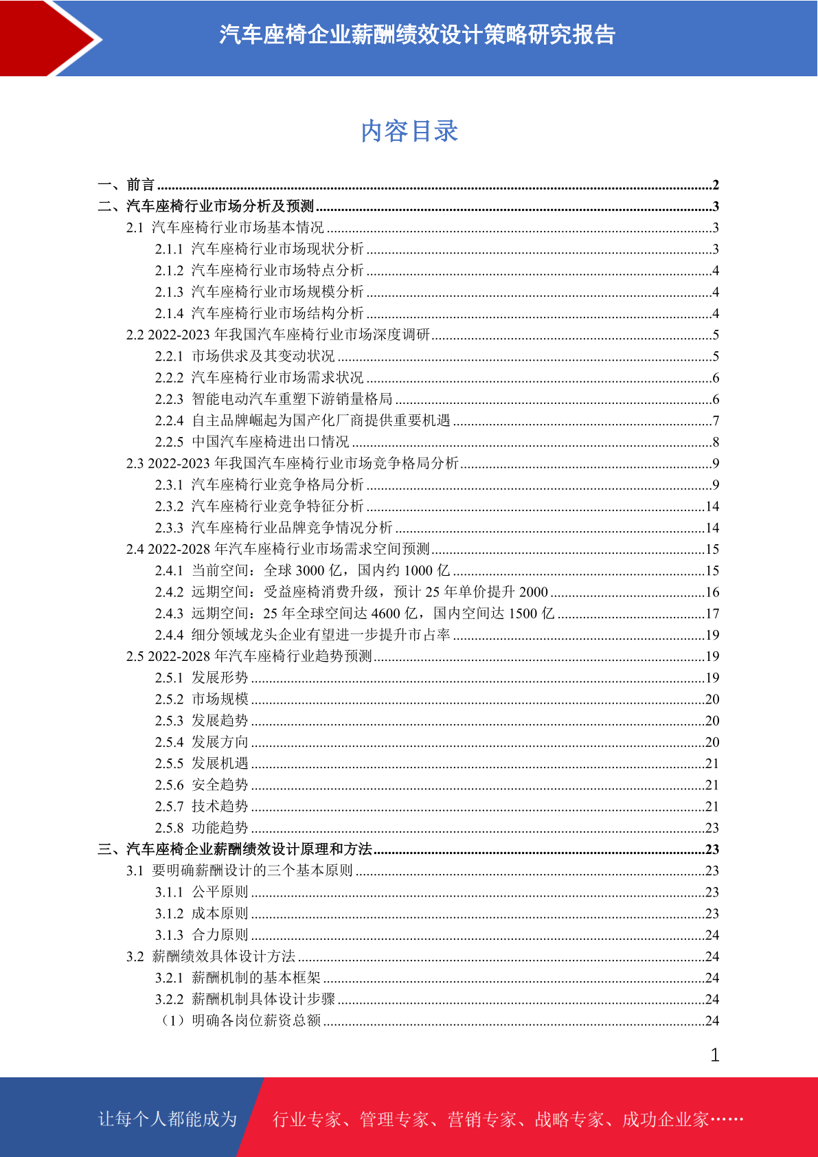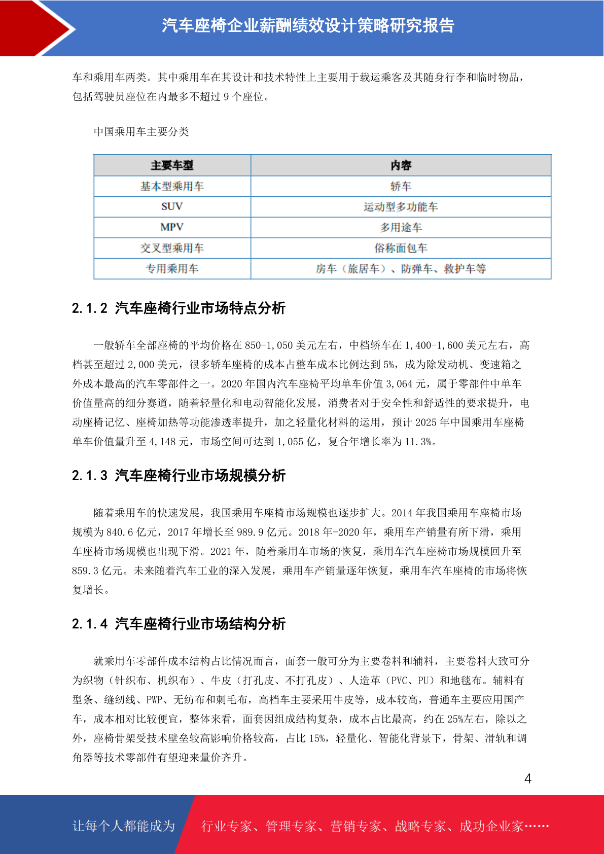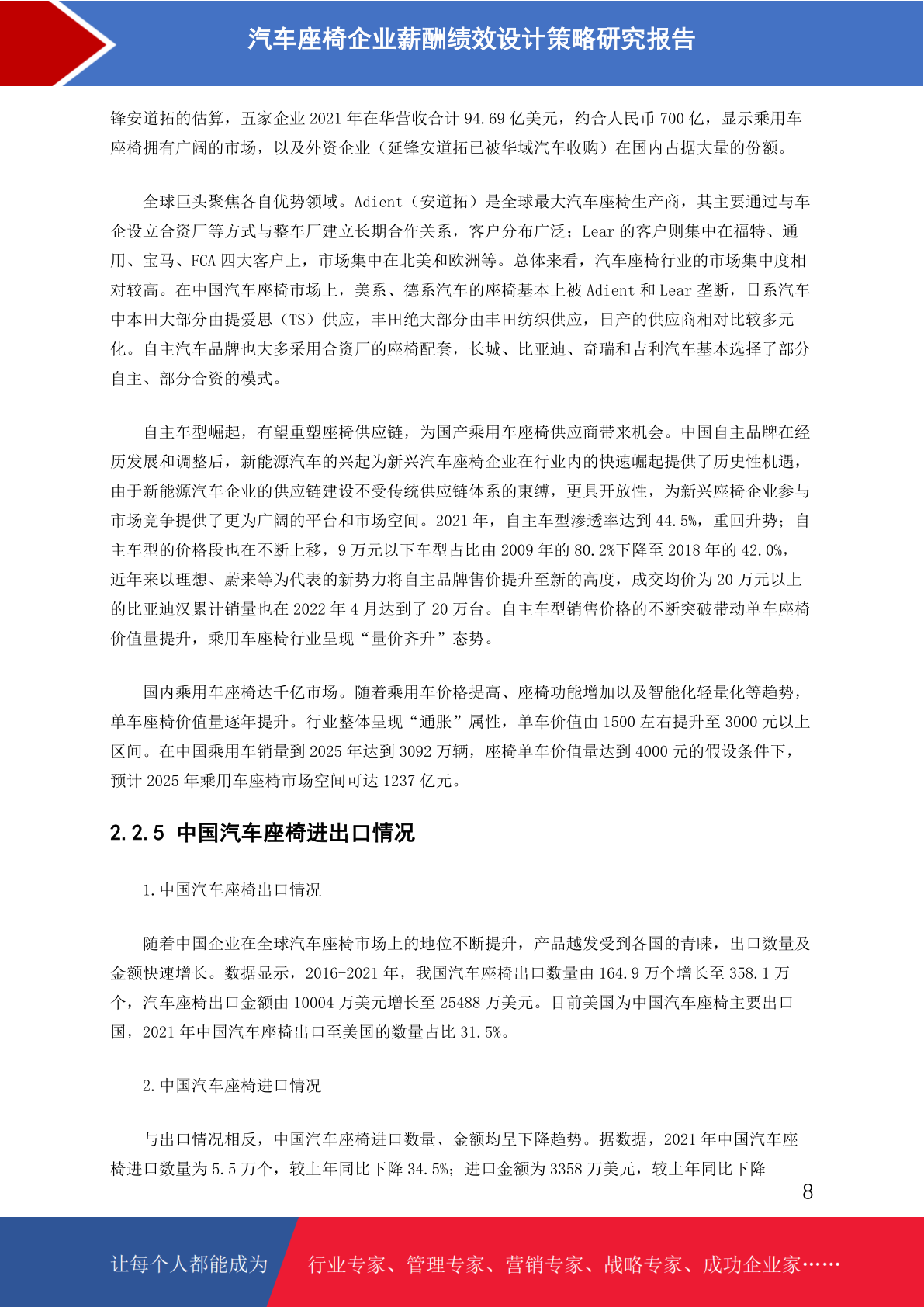 汽车座椅市场分析及薪酬绩效设计策略研究报告