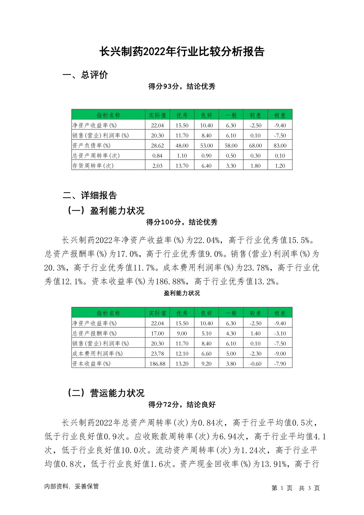 835269长兴制药2022年行业比较分析报告