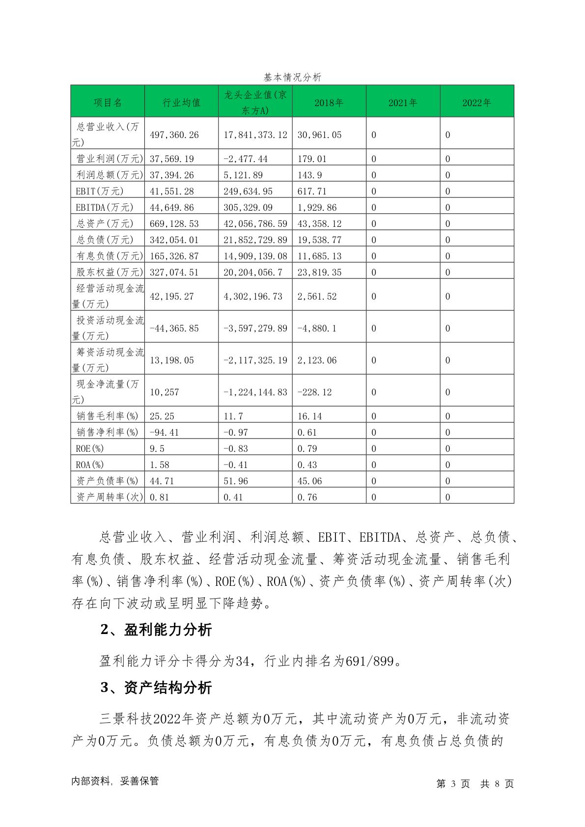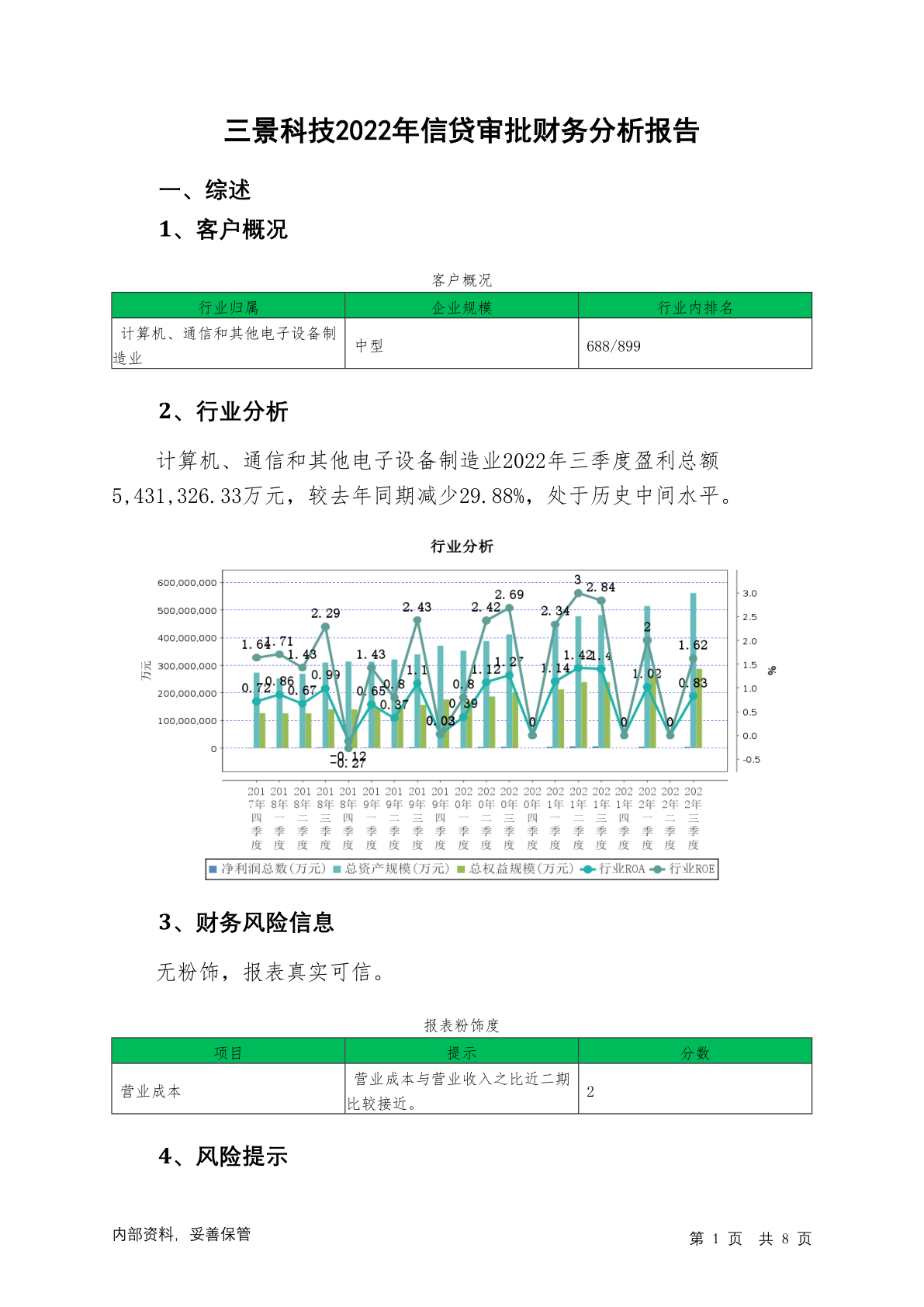 430393三景科技2022年信贷审批财务分析报告