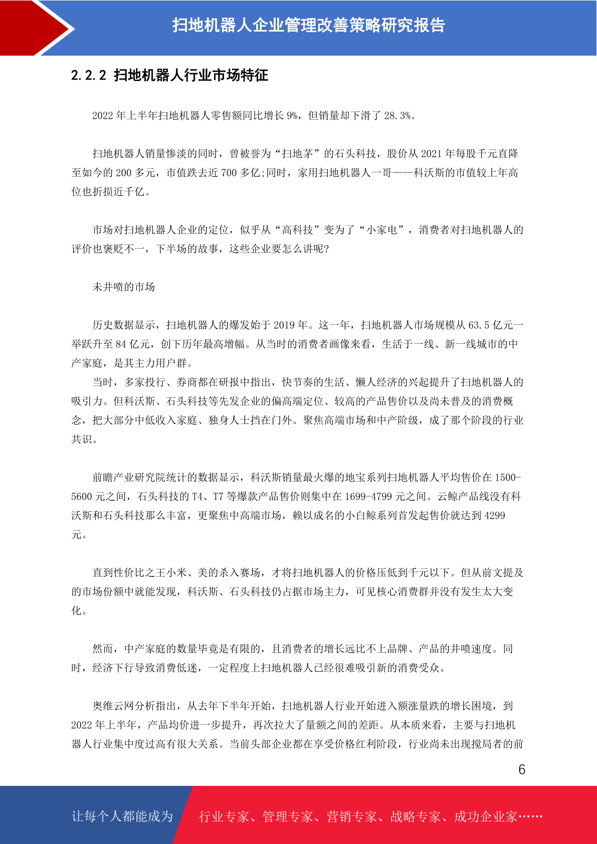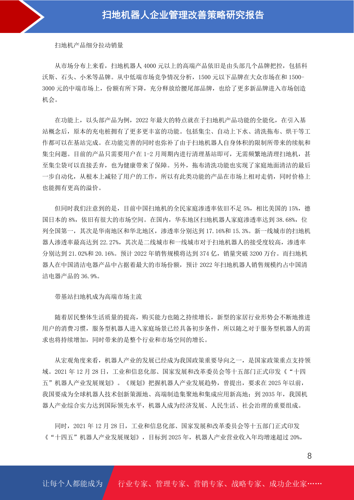 扫地机器人企业管理中存在的问题及改善策略研究报告
