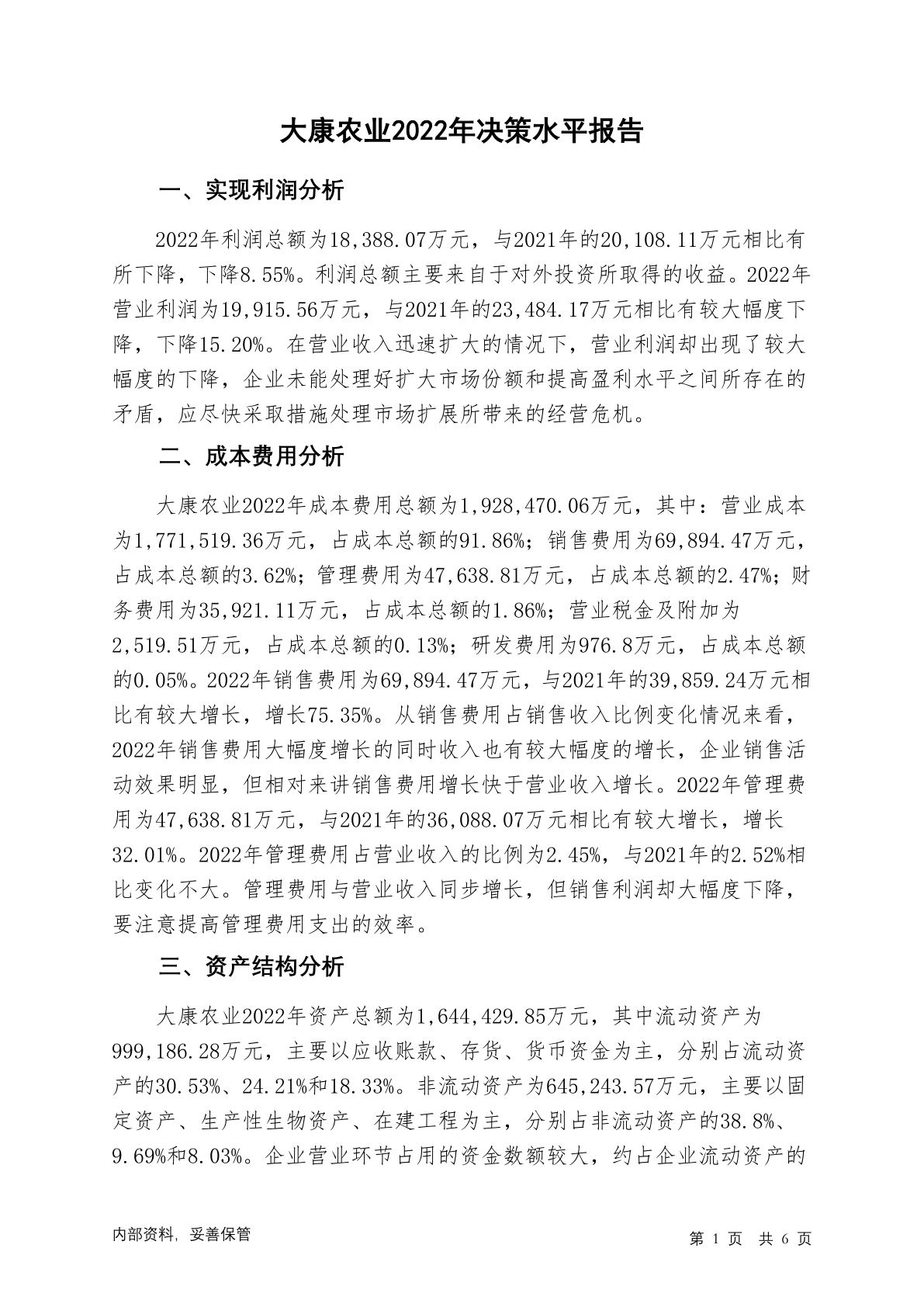 002505大康农业2022年决策水平分析报告
