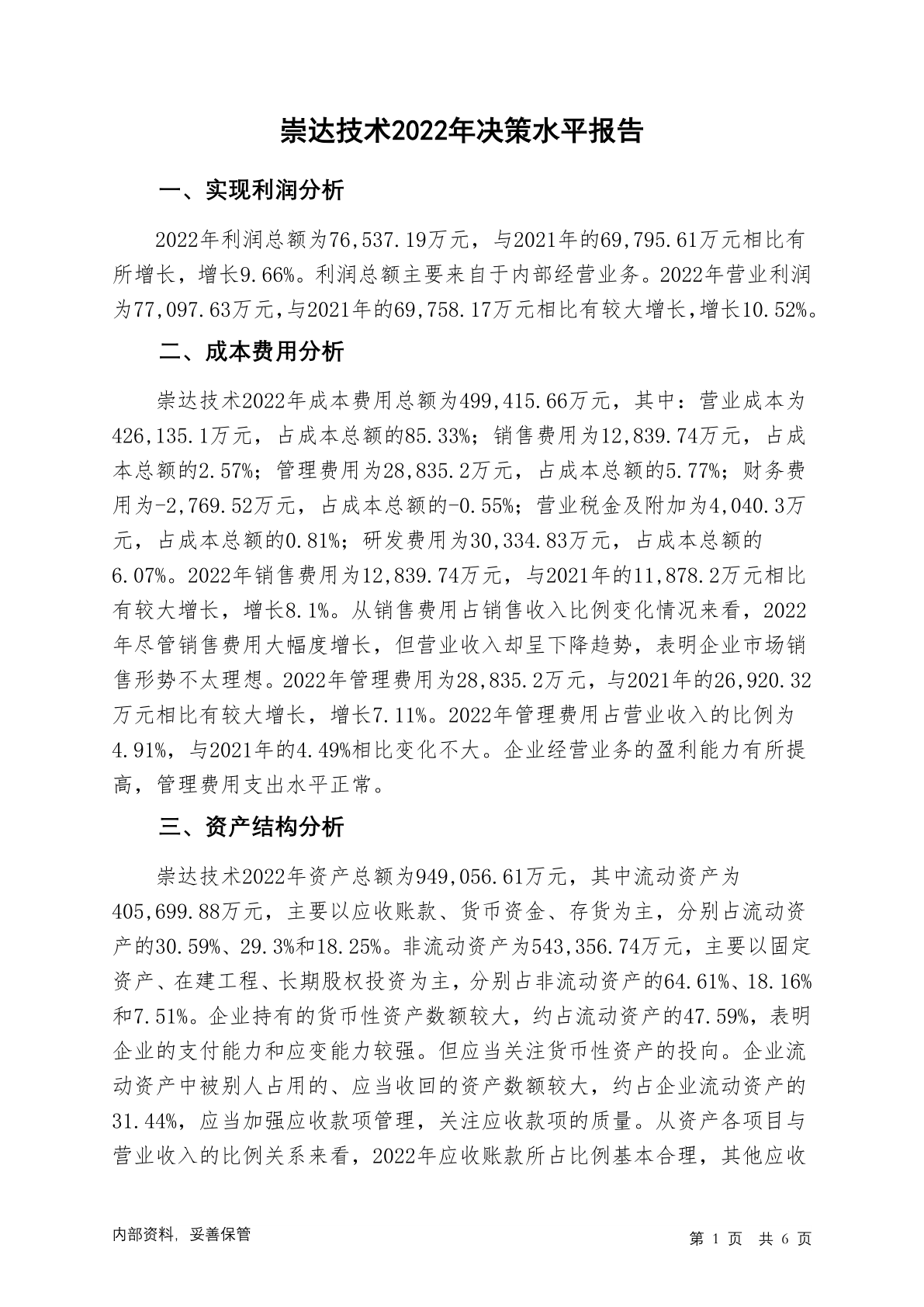 002815崇达技术2022年决策水平分析报告