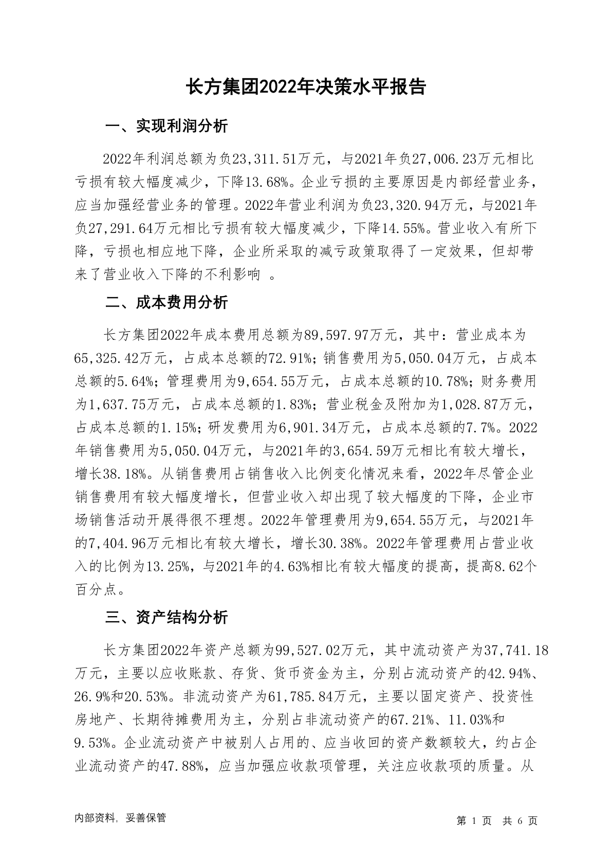 300301长方集团2022年决策水平分析报告