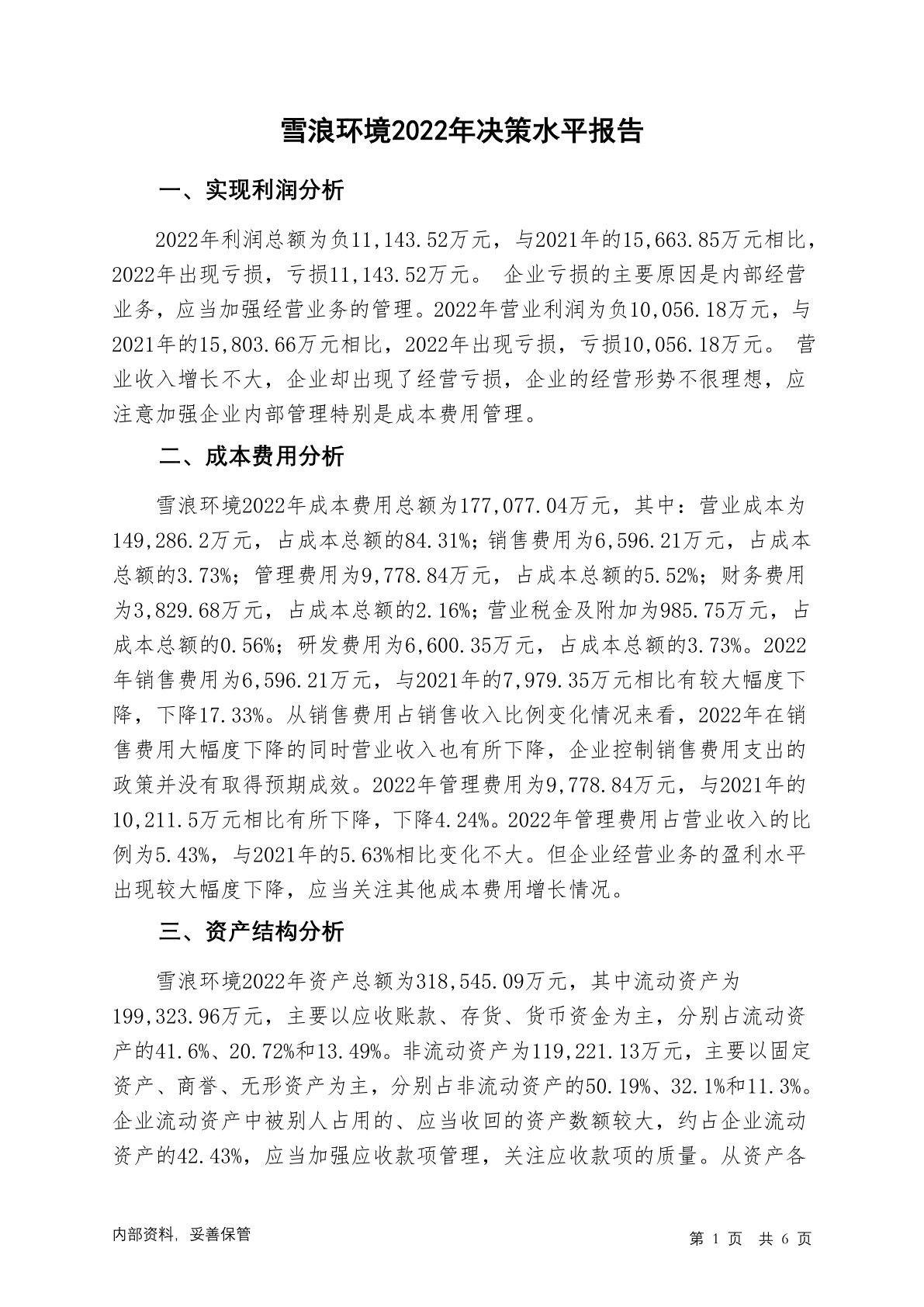 300385雪浪环境2022年决策水平分析报告