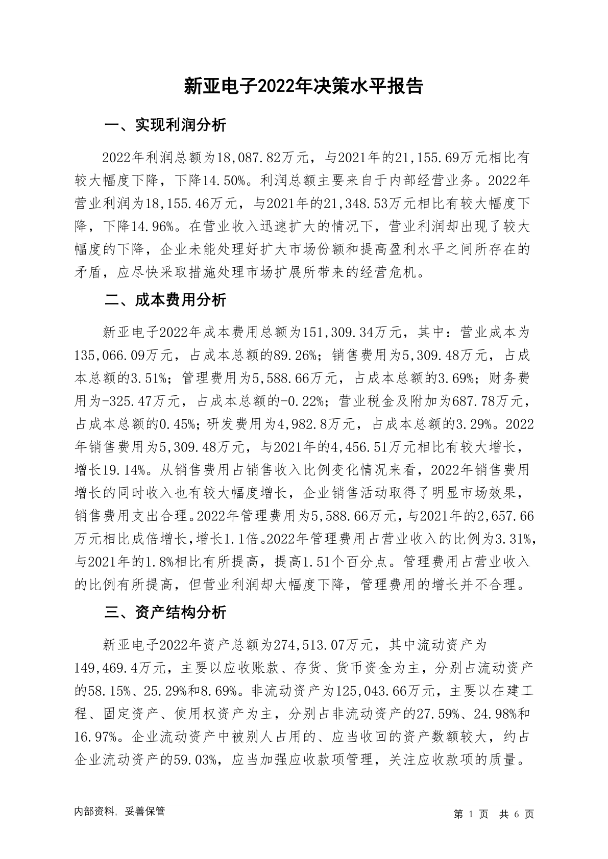 605277新亚电子2022年决策水平分析报告