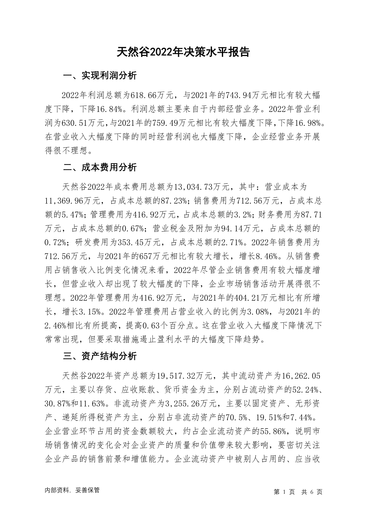 833760天然谷2022年决策水平分析报告