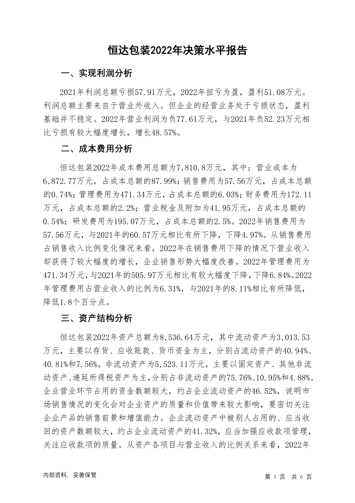 835175恒达包装2022年决策水平分析报告
