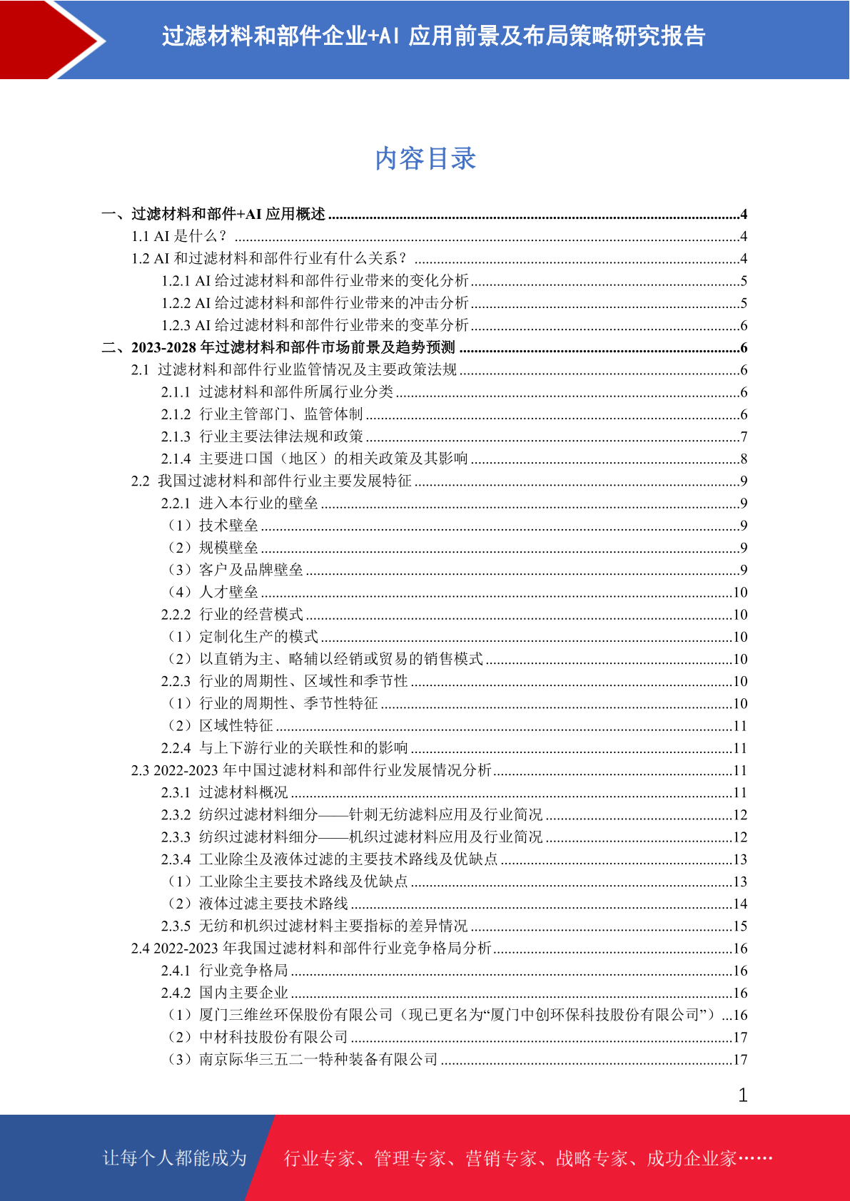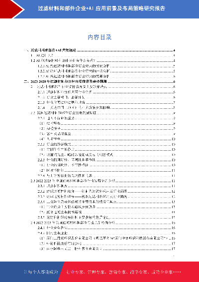 过滤材料和部件企业+AI布局策略研究报告