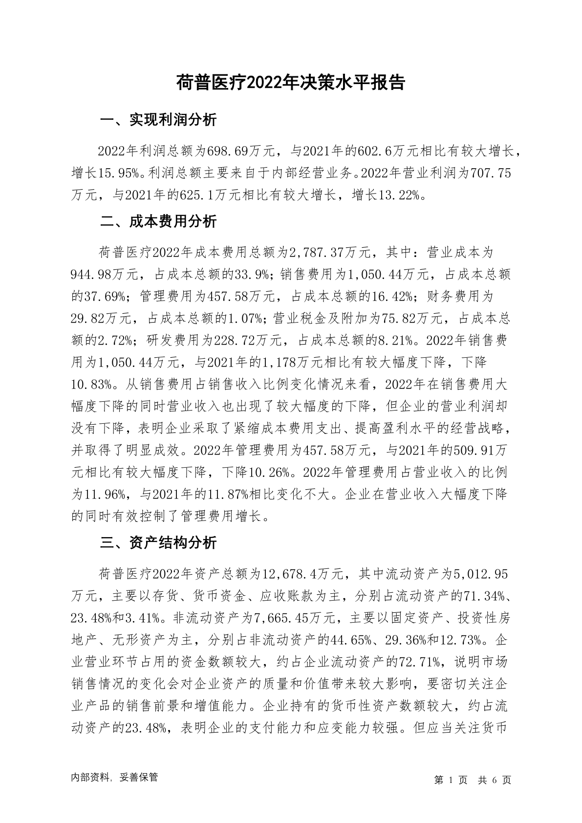 839926荷普医疗2022年决策水平分析报告