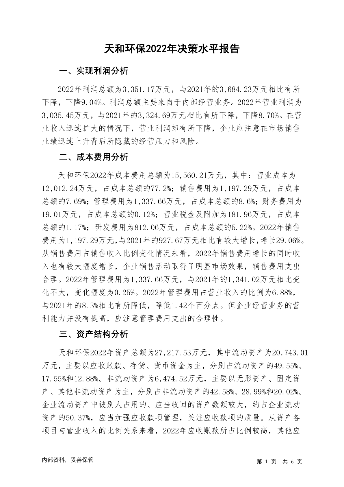 871037天和环保2022年决策水平分析报告