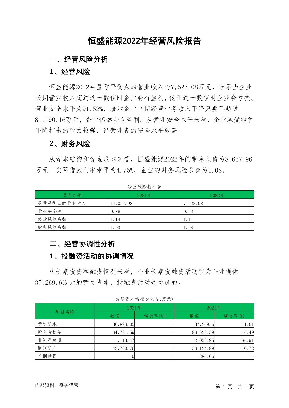 605580恒盛能源2022年经营风险报告