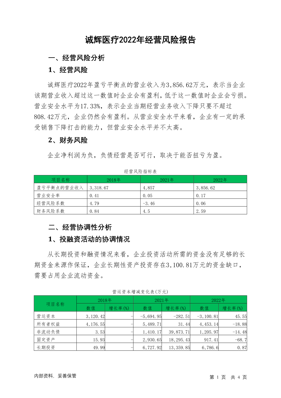 870856诚辉医疗2022年经营风险报告