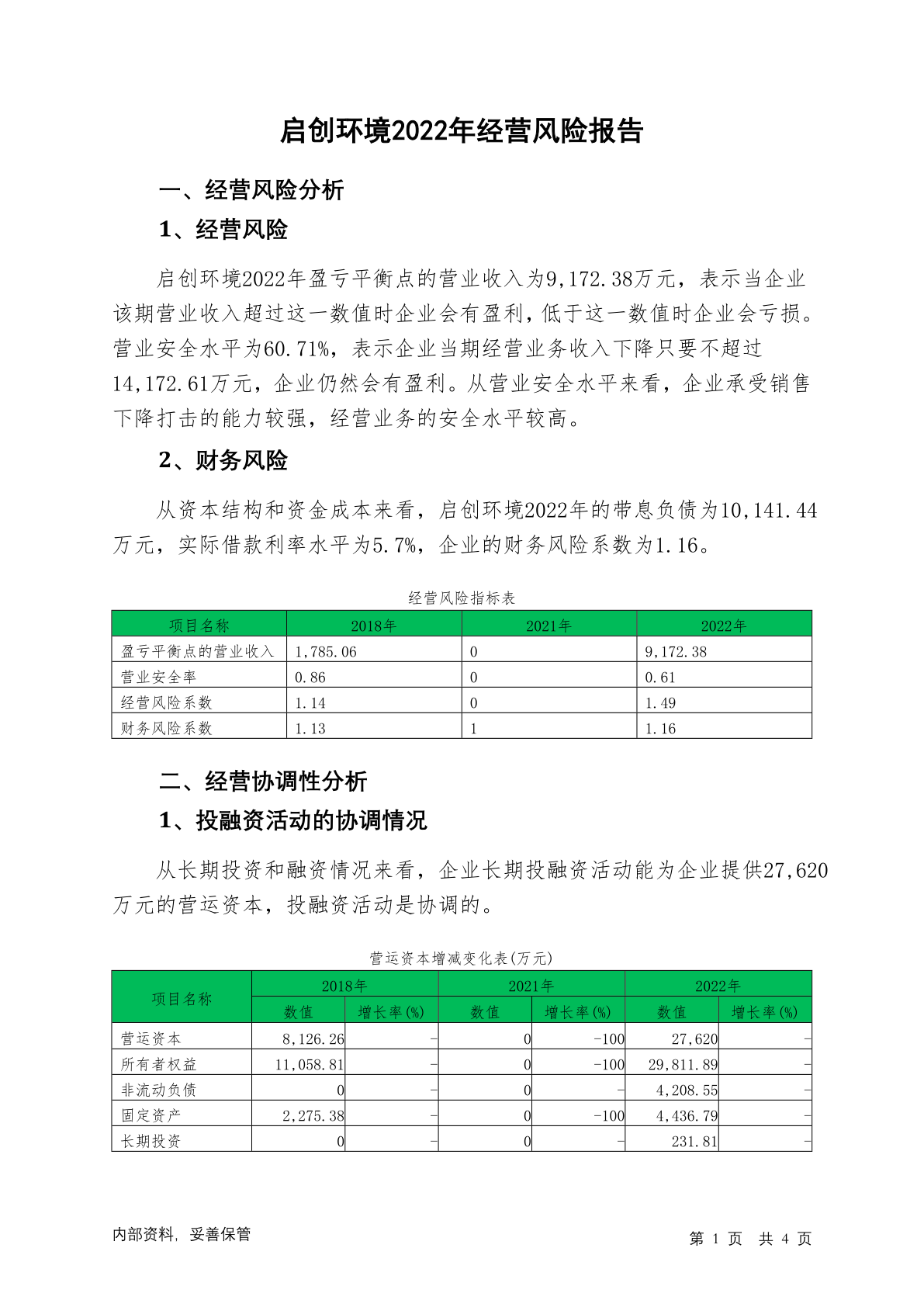 872515启创环境2022年经营风险报告