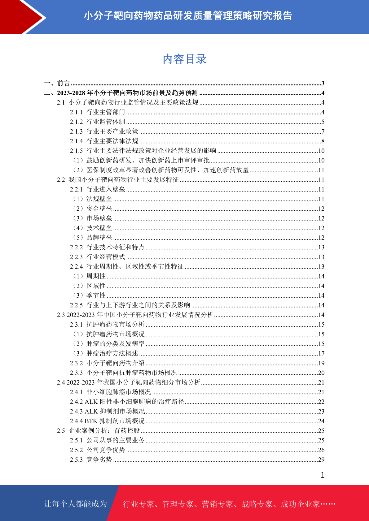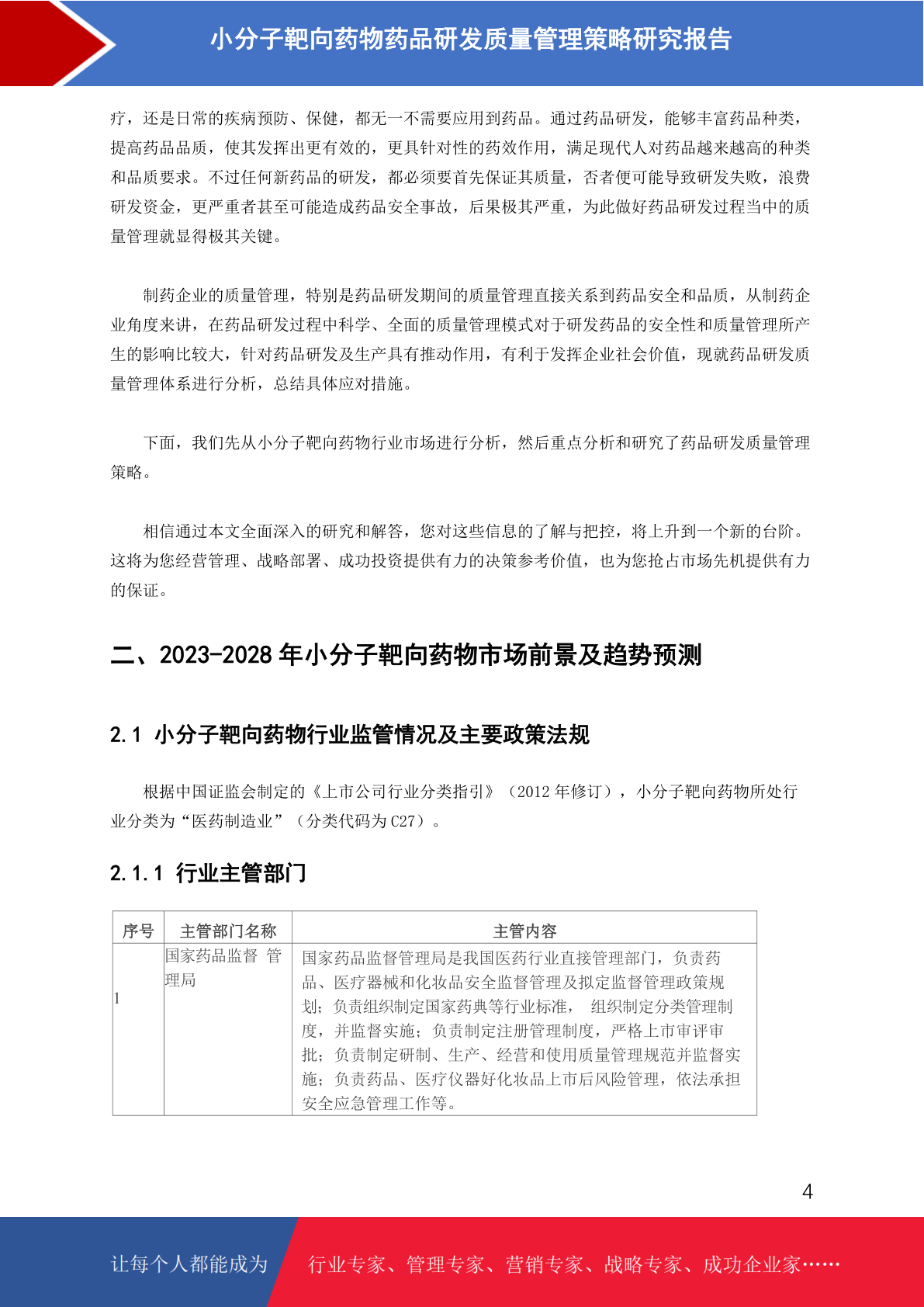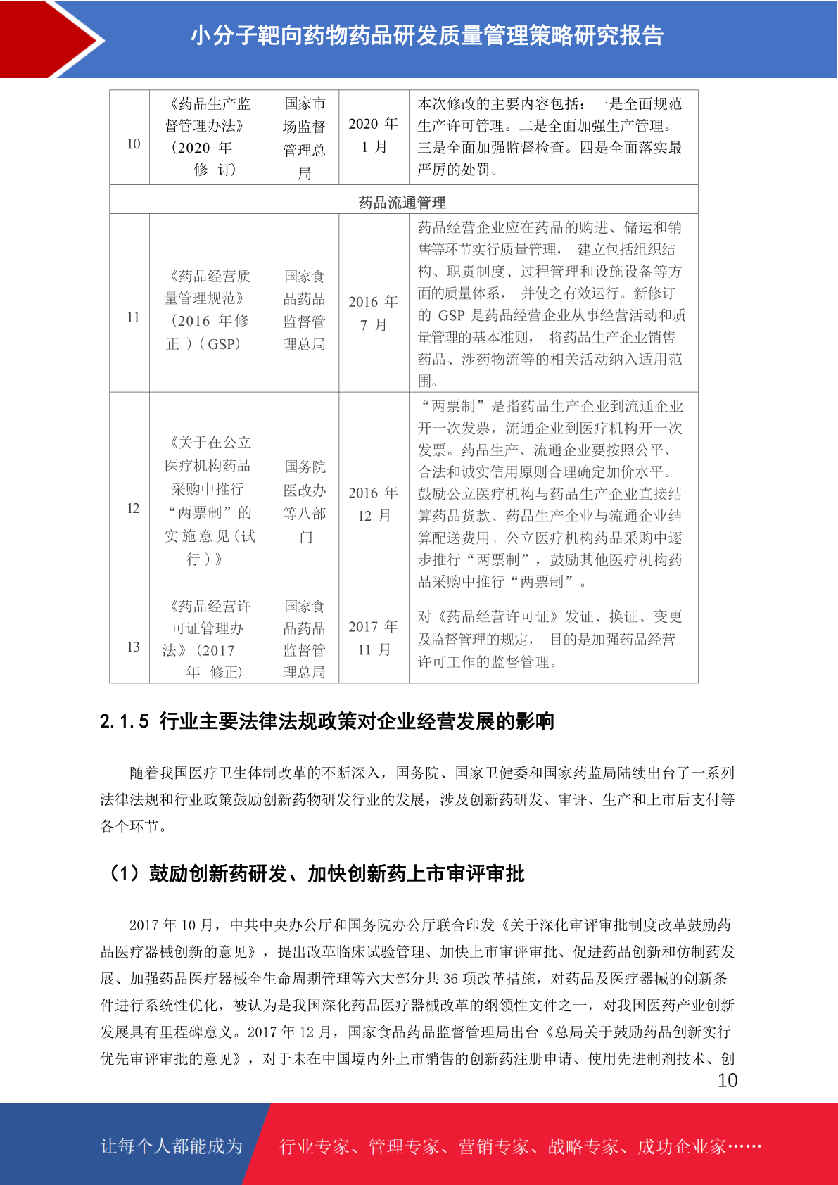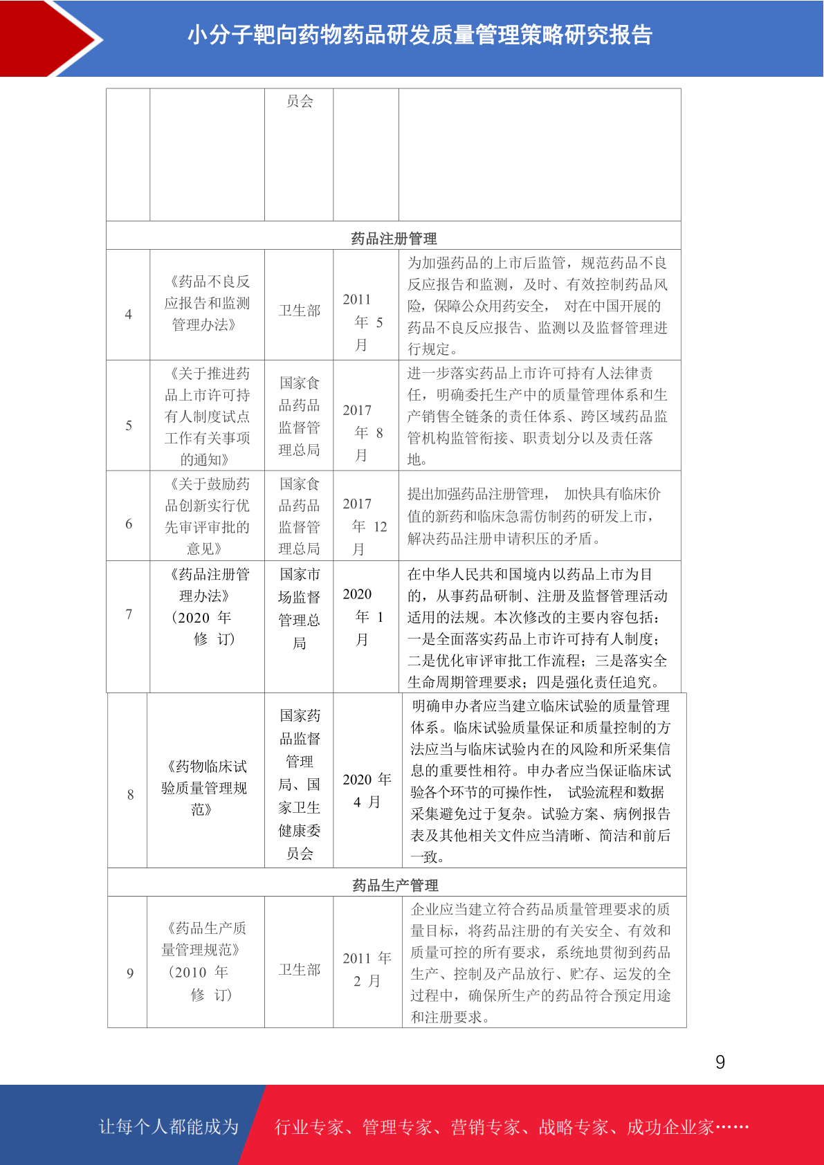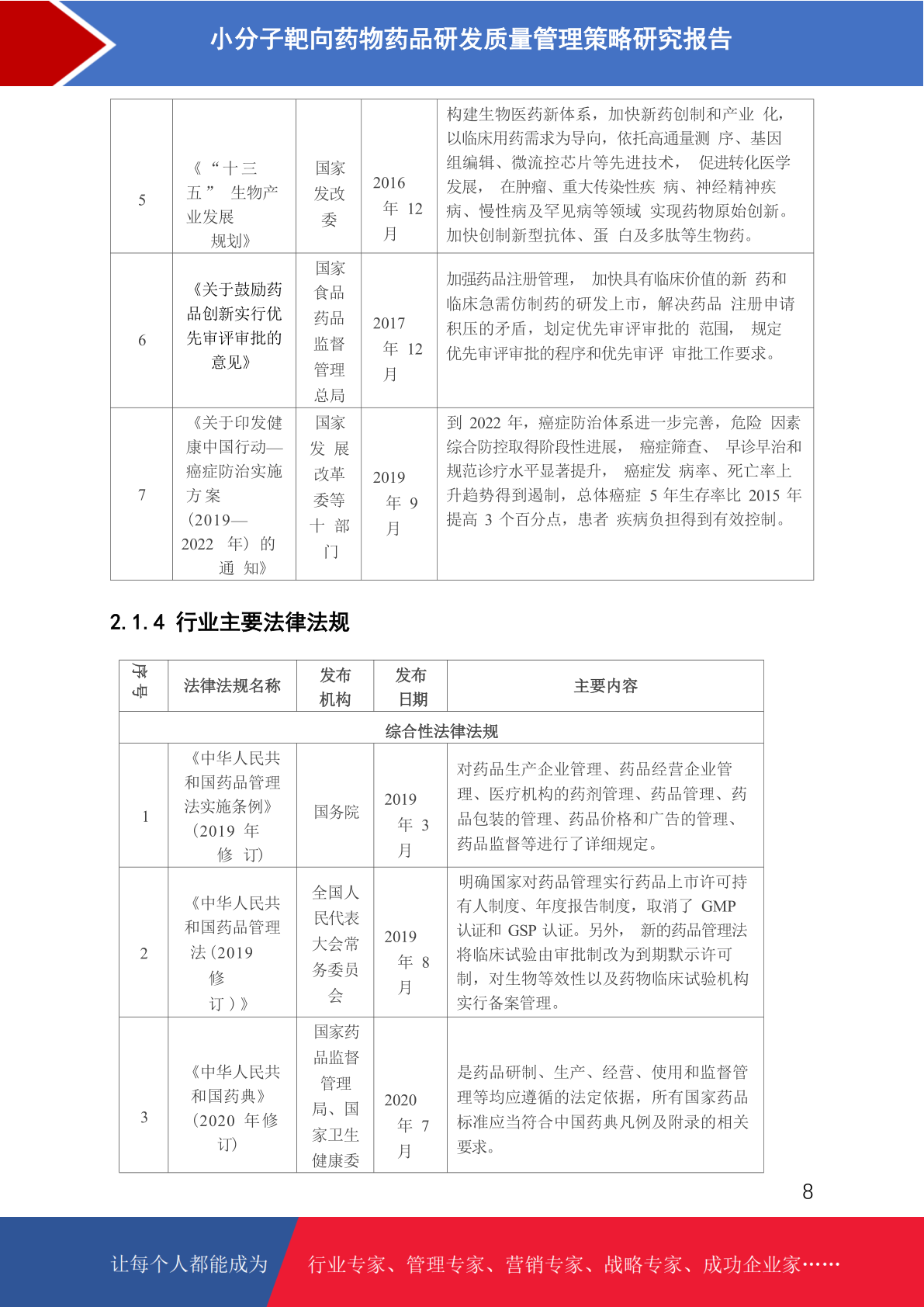 小分子靶向药物企业药品研发质量管理策略研究报告