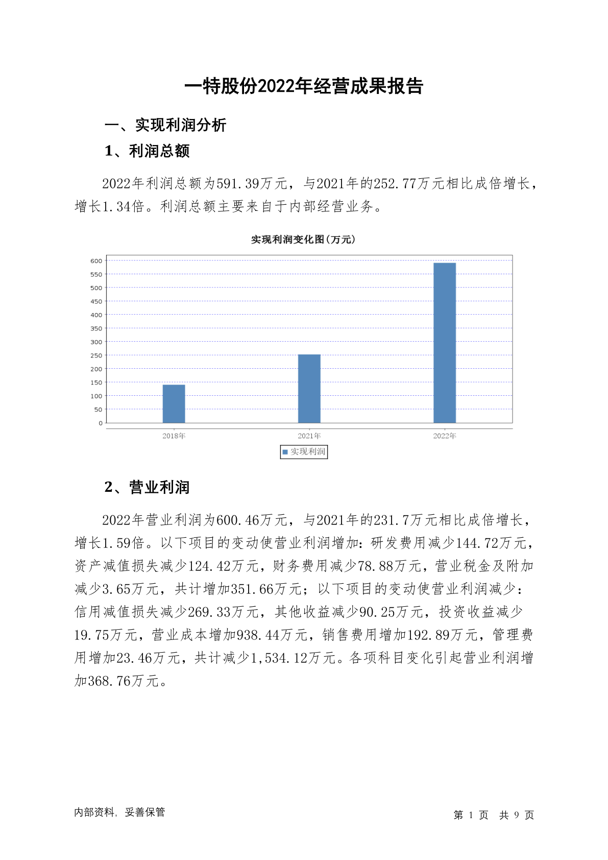839074一特股份2022年经营成果报告