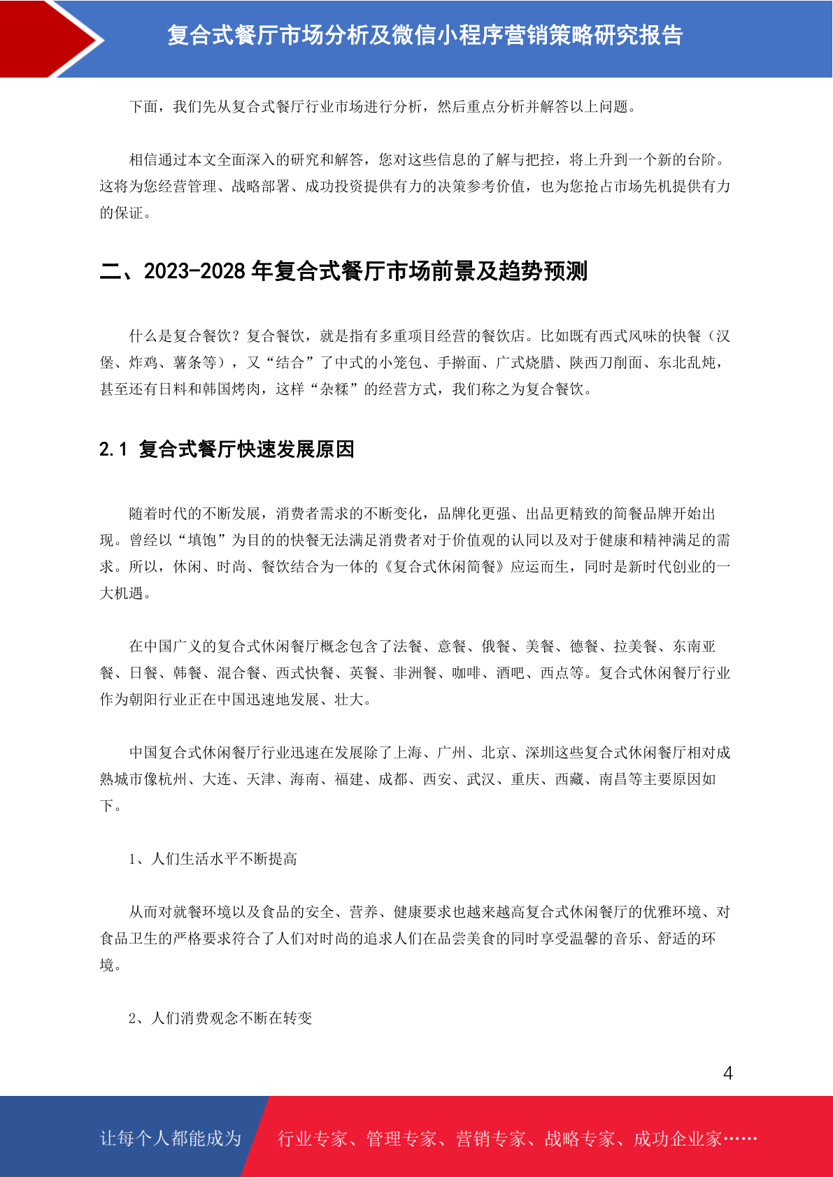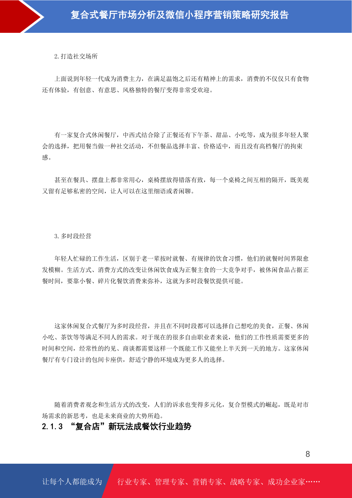 复合式餐厅市场前景预测与微信小程序营销策略研究报告