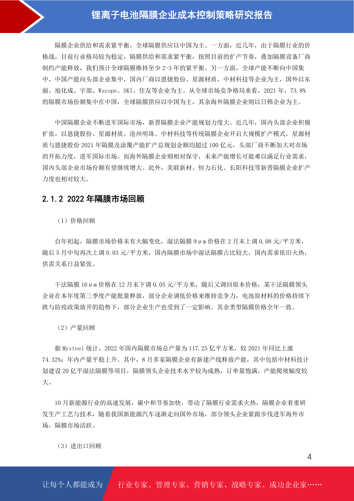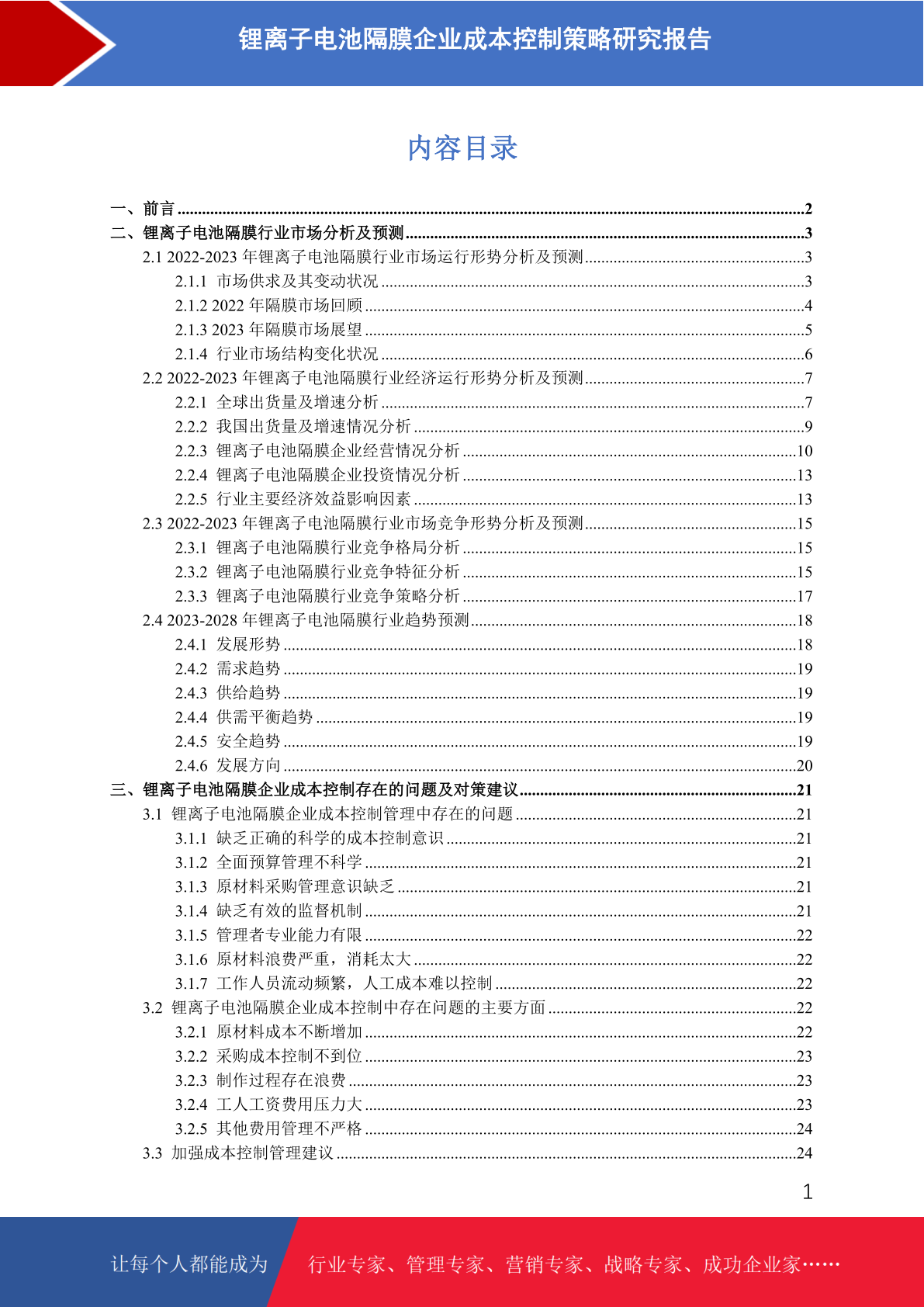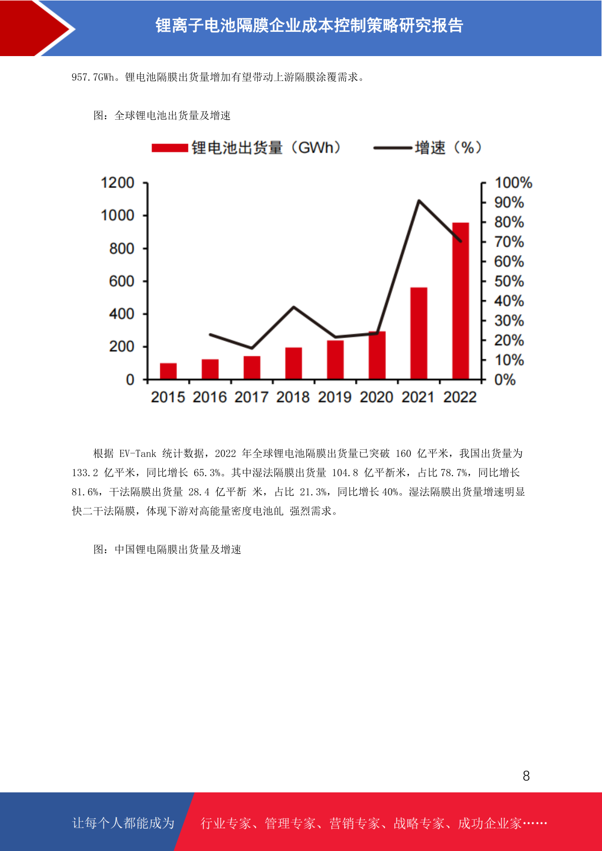 锂离子电池隔膜企业成本控制存在的问题及策略研究报告