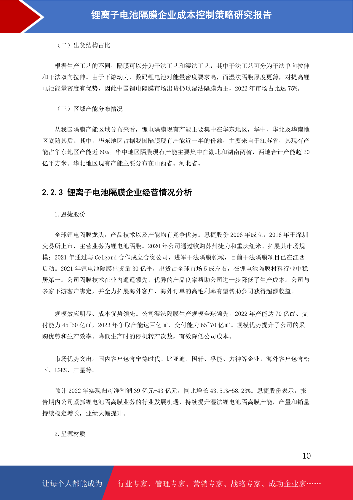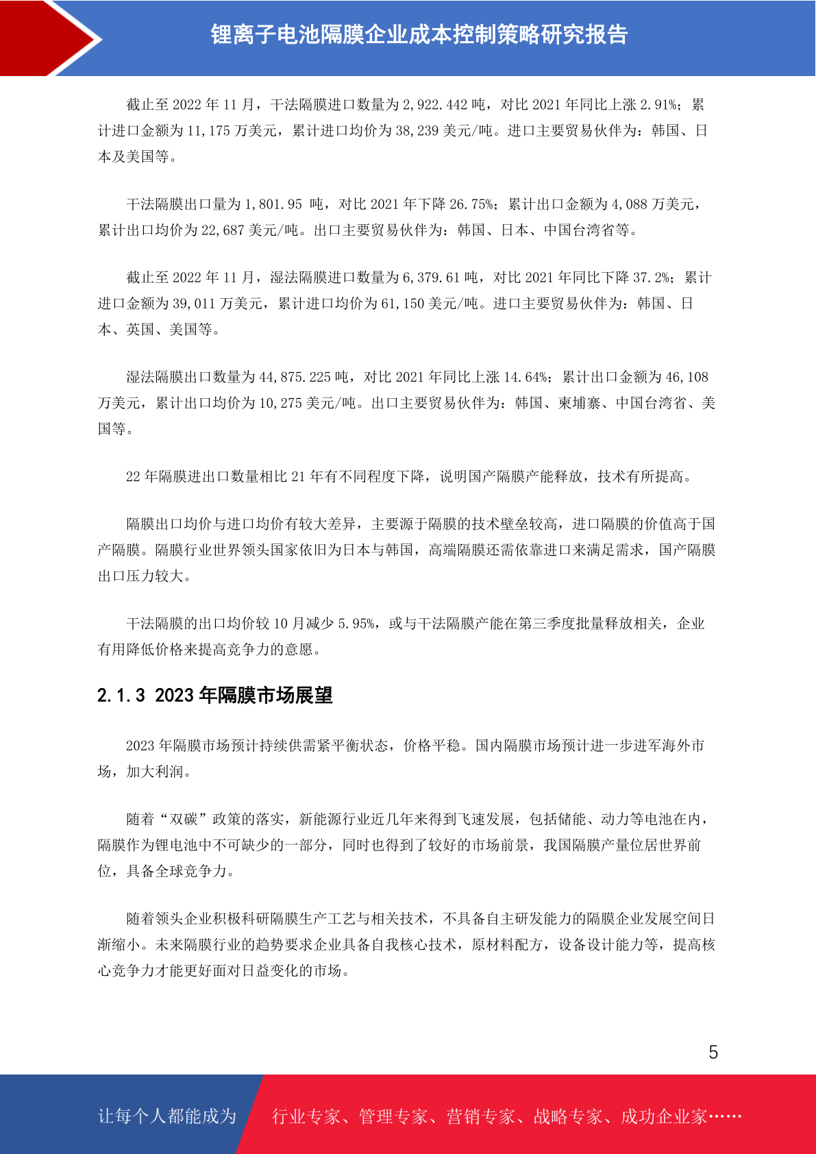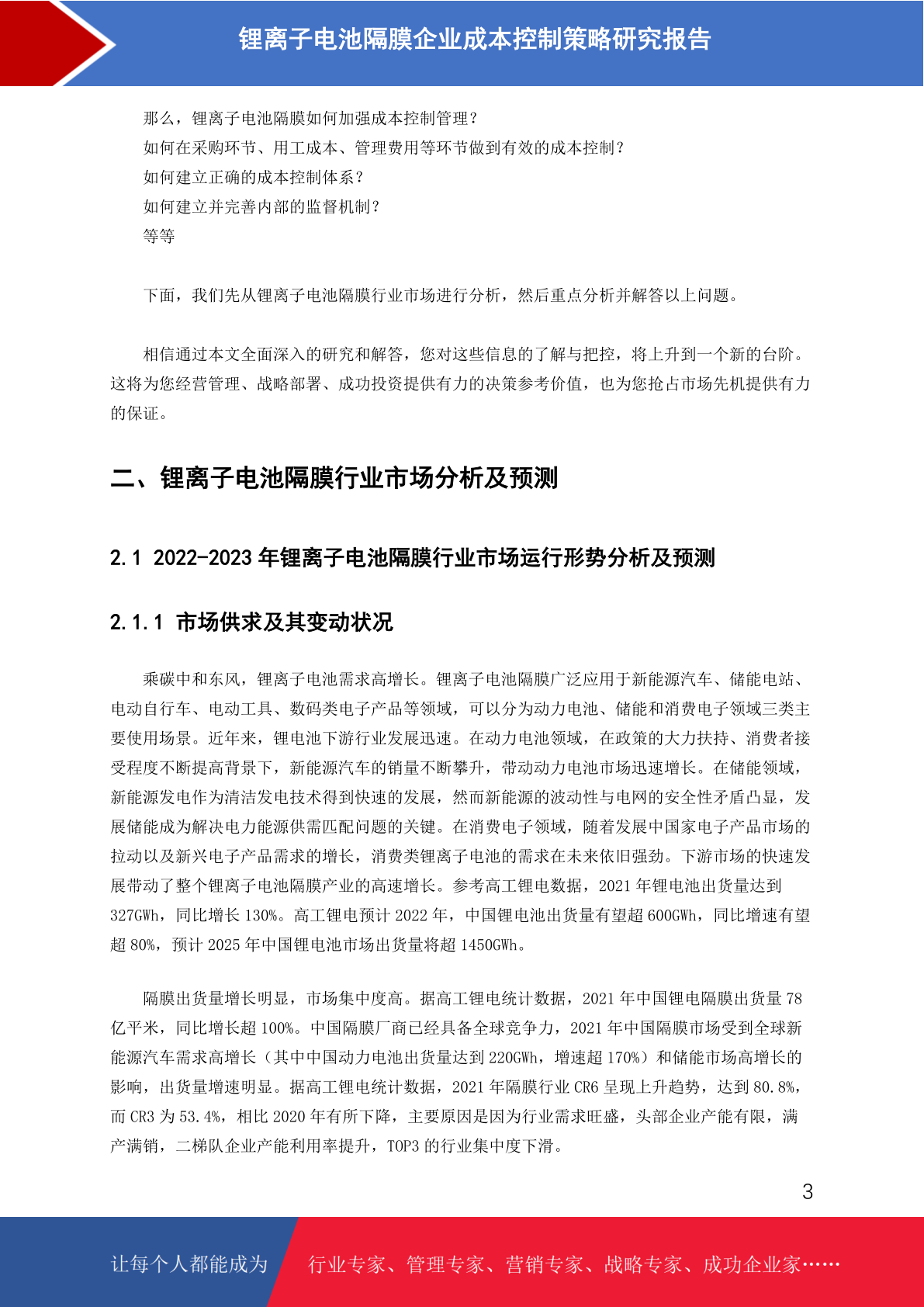 锂离子电池隔膜企业成本控制存在的问题及策略研究报告