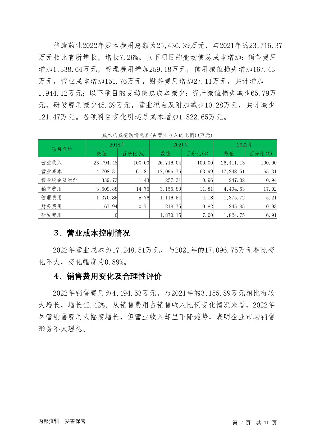 872799益康药业2022年管理水平报告