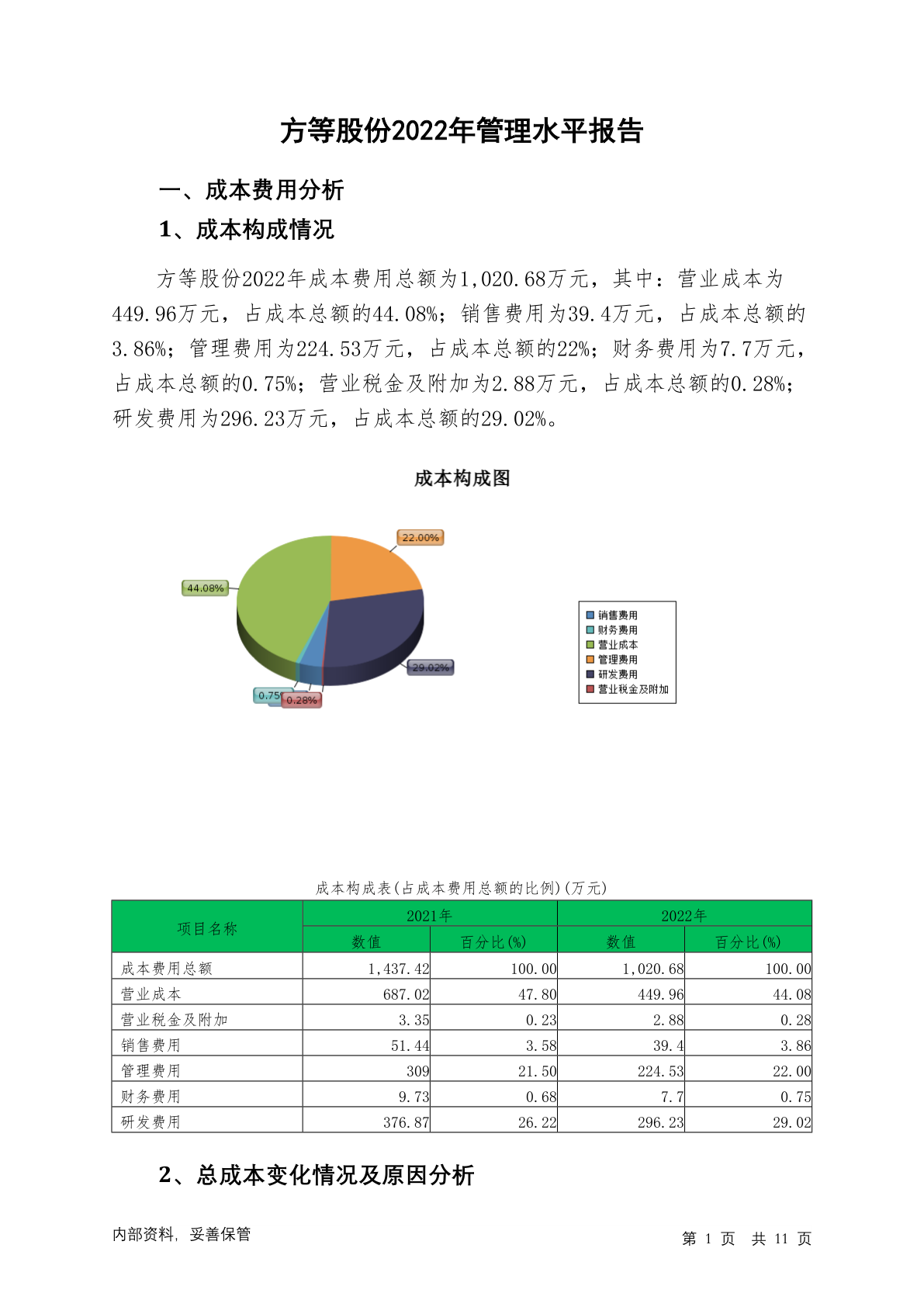 873403方等股份2022年管理水平报告