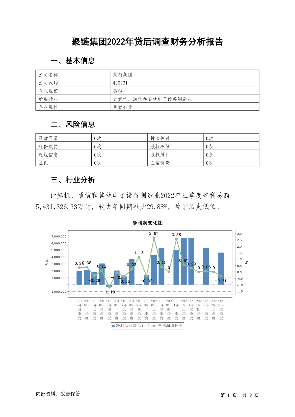 430361聚链集团2022年贷后调查财务分析报告