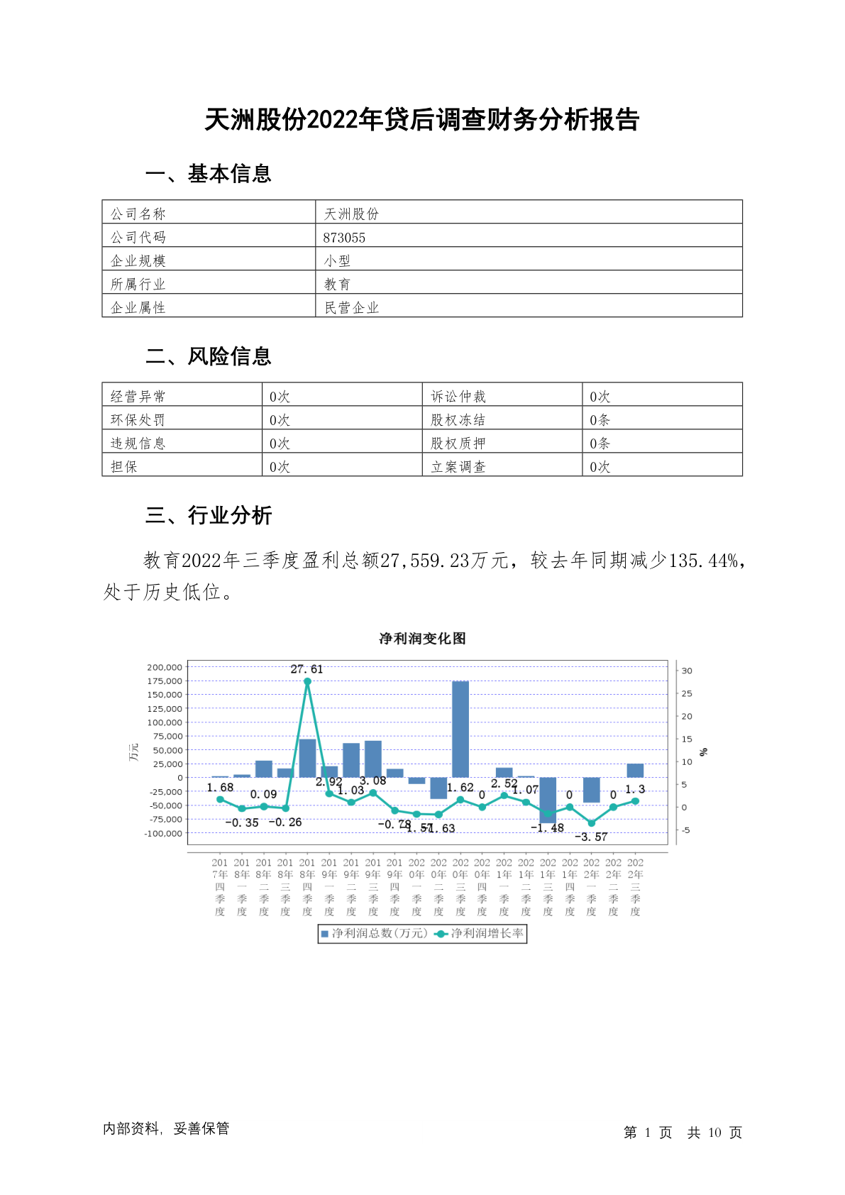 873055天洲股份2022年贷后调查财务分析报告