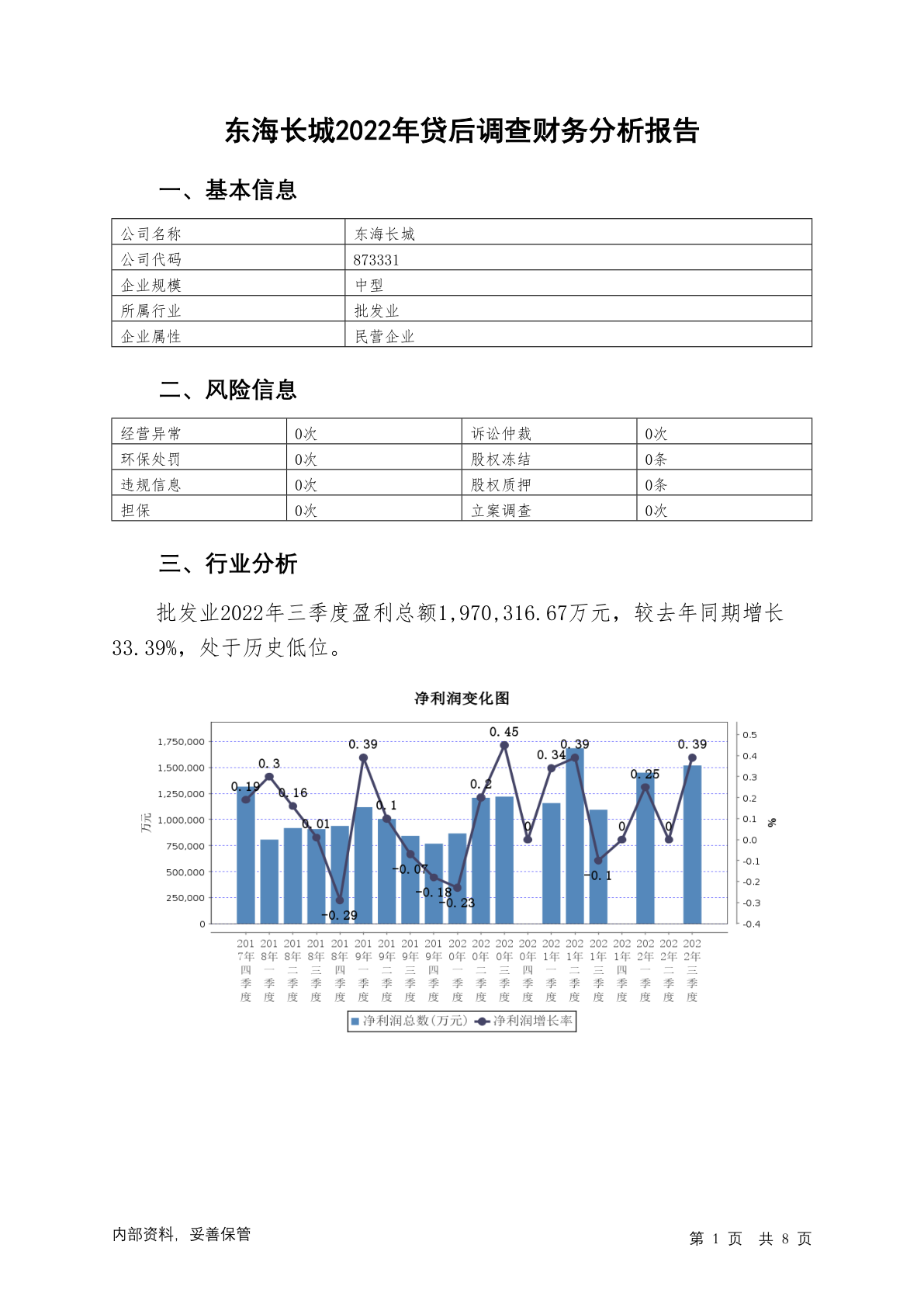 873331东海长城2022年贷后调查财务分析报告