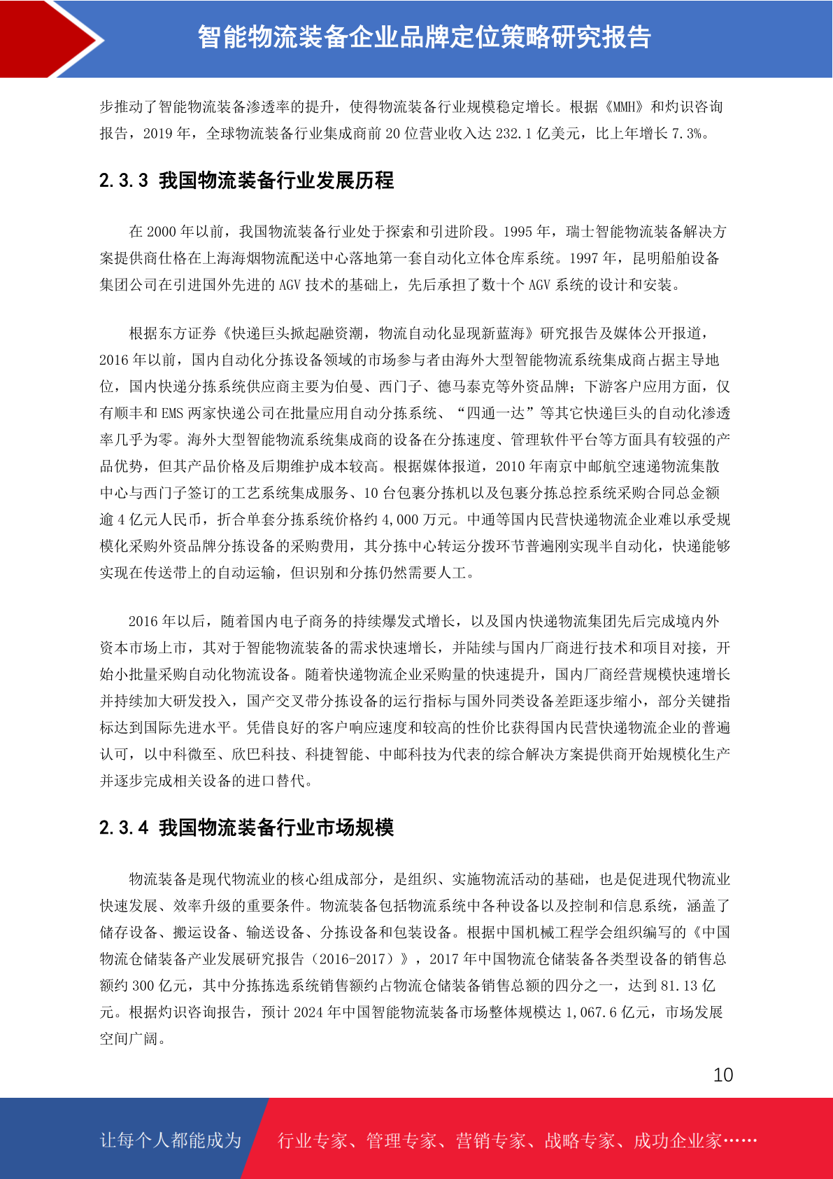 智能物流装备市场前景预测与品牌定位策略研究报告