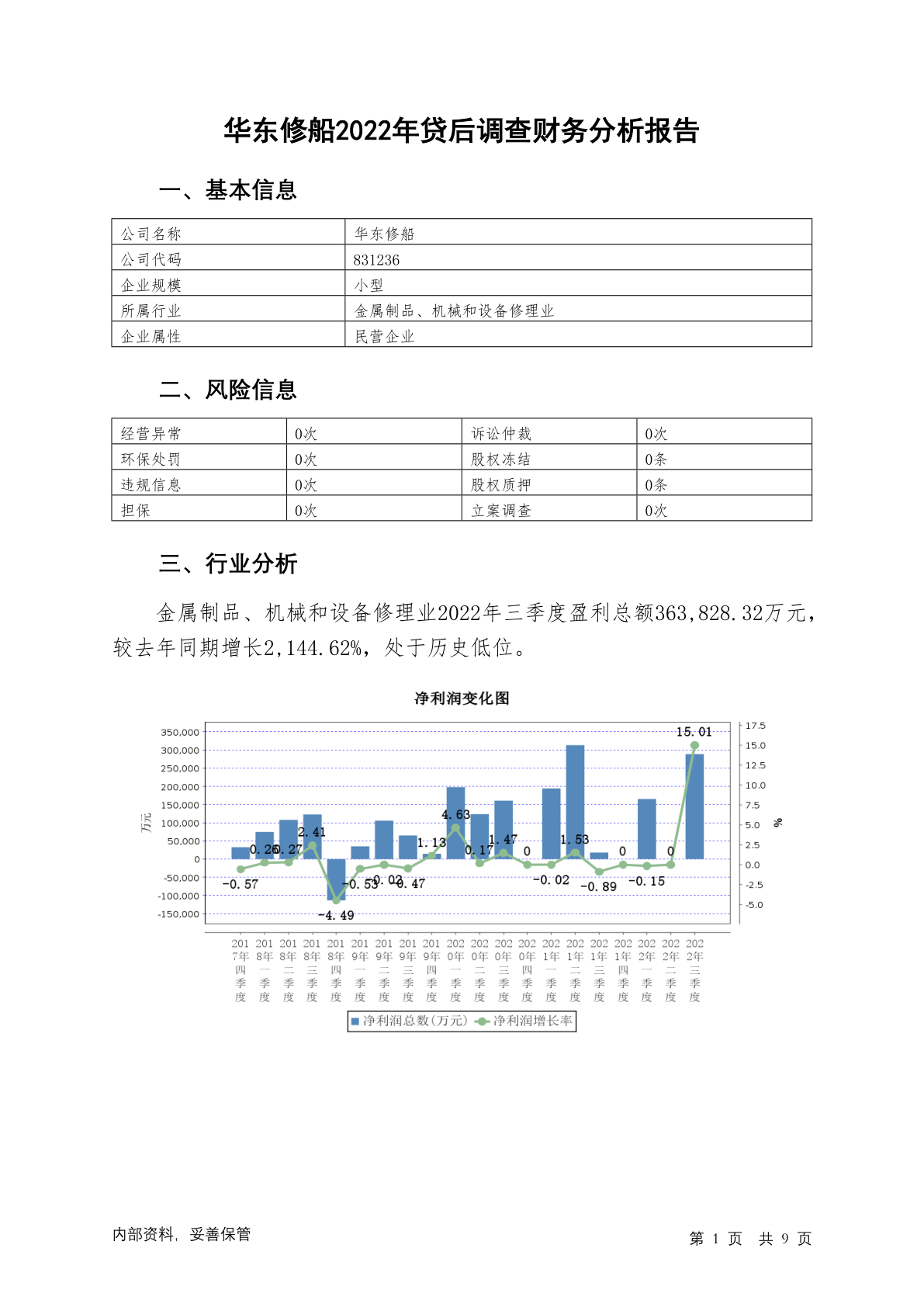 831236华东修船2022年贷后调查财务分析报告