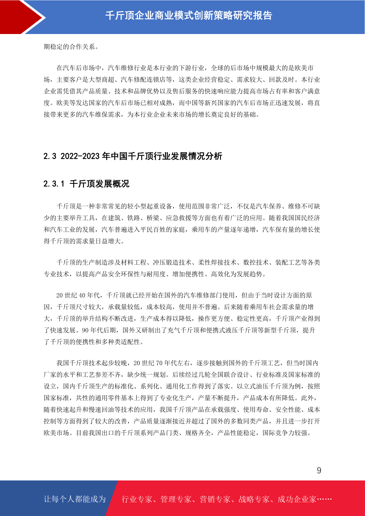 千斤顶市场前景预测与商业模式创新策略研究报告