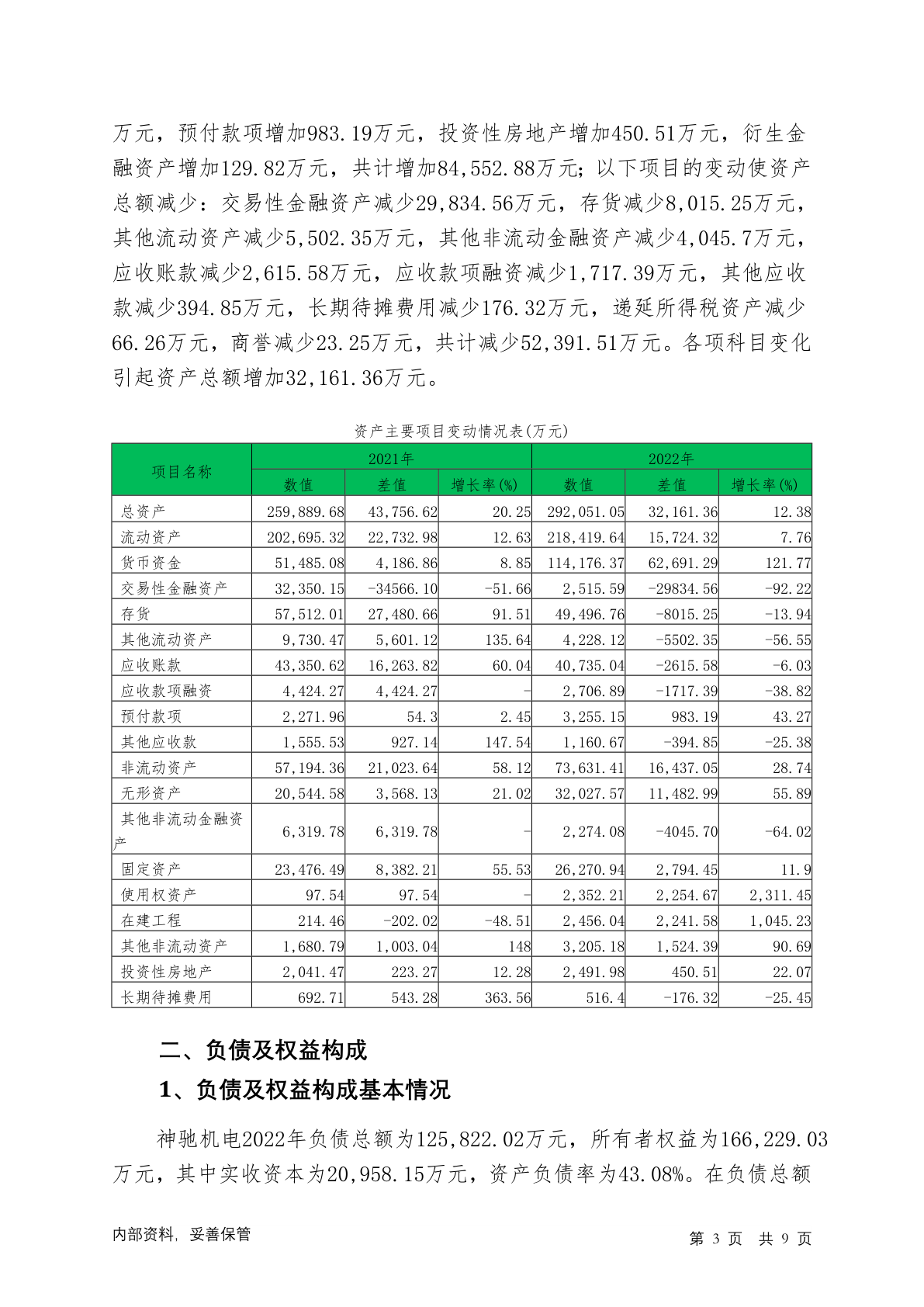 603109神驰机电2022年财务状况报告